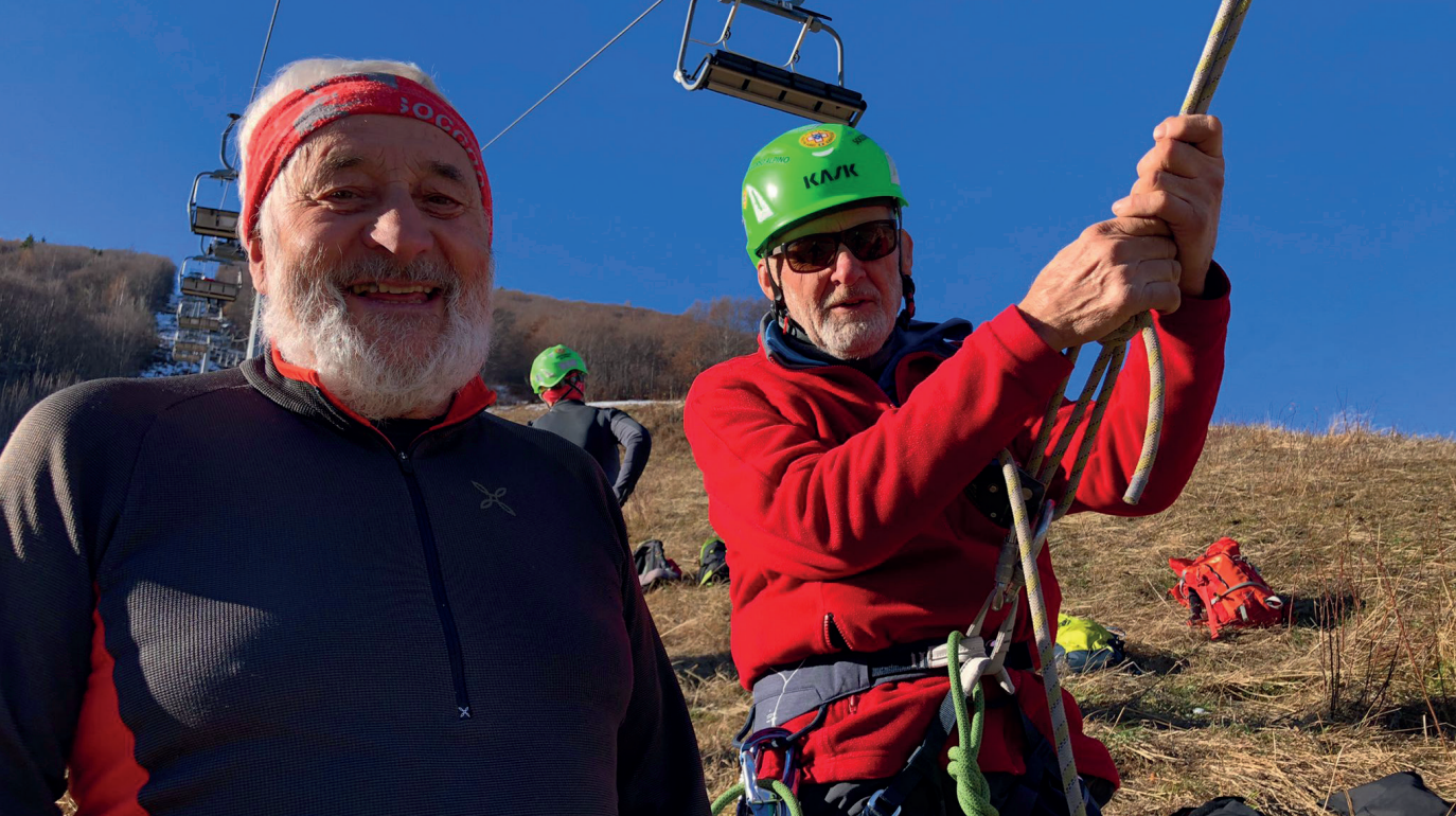 Nino Perino con Paolo Dematteis durante un'esercitazione. Foto CNSAS Piemonte“Ci fosse stato anche solo quell’intervento in tutta la mia vita da soccorritore, sarebbe già bastato per dare un senso a tutto il tempo speso per essere preparati a questo servizio di volontariato”.