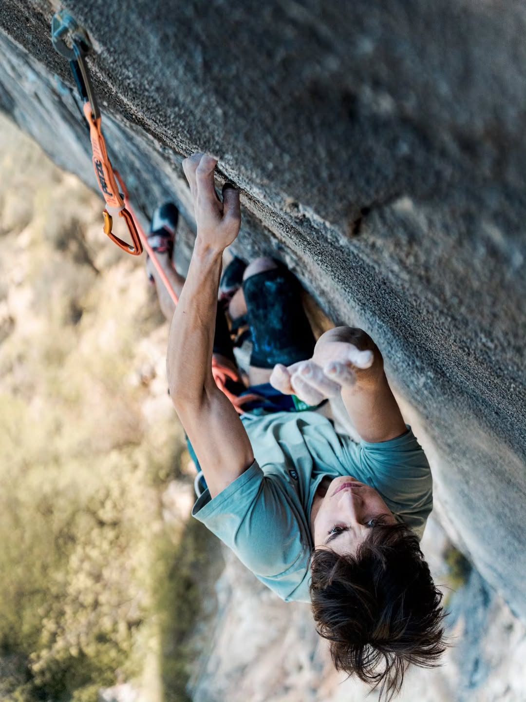 "Non è particolarmente difficile; la nuova beta probabilmente la rende molto più facile di prima. Questa via è bella come me l'aspettavo, e la falesia è assolutamente magica”. Gianluca Vighetti