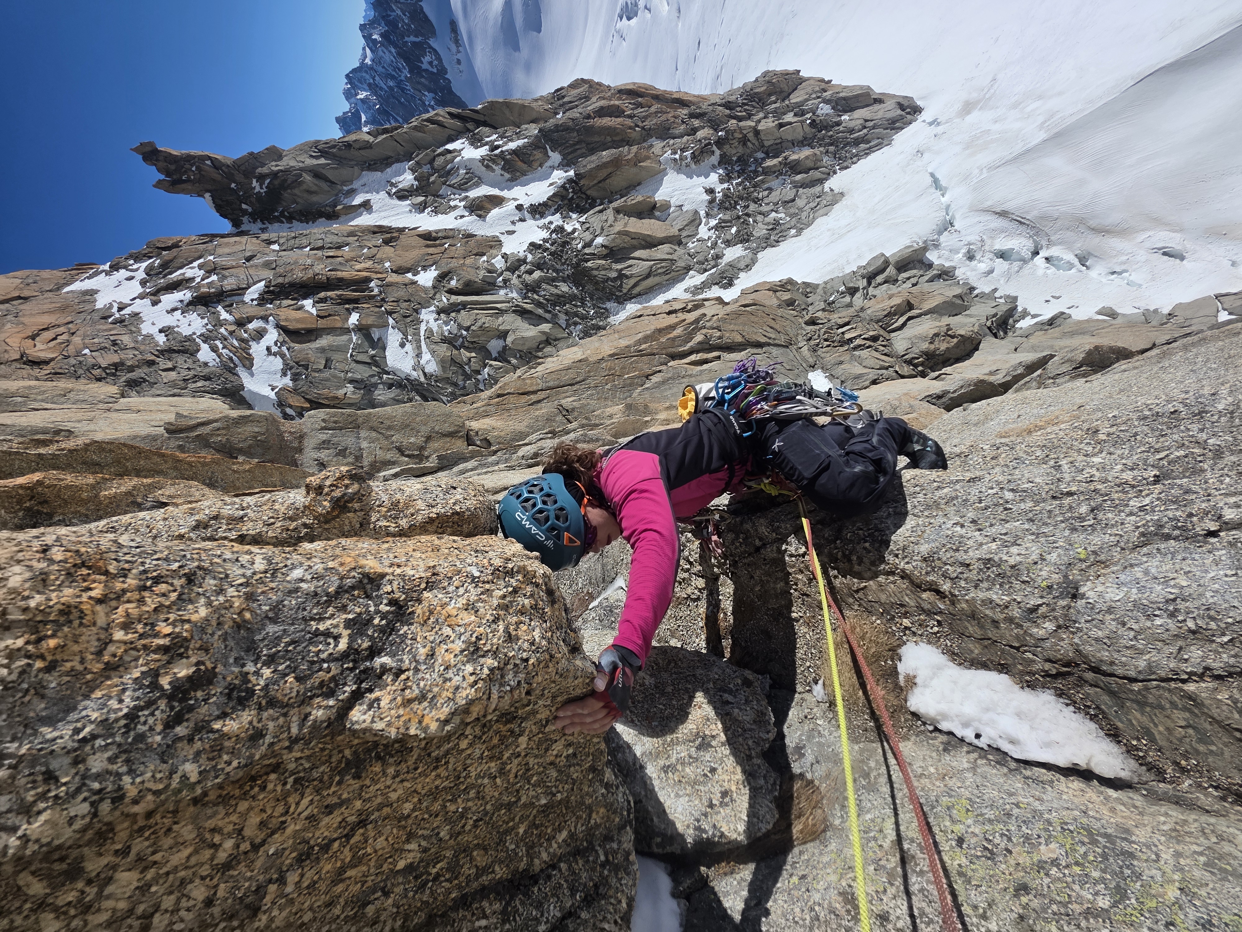 L'ambiente del Bianco ha permesso di mettere all'opera le rispettive competenze su diversi terreni. “Abbiamo potuto assaporare tutte le sfaccettature della montagna e soprattutto dell'ambiente in alta quota: goulotte, vie di roccia, di misto. Ci siamo mossi in ambienti diversi. Ma poi, banalmente, anche il fatto di andare a dormire molto presto perché poi le temperature scendevano..era tutto molto interessante e ha permesso di fare gruppo. E poi l'ambiente del Bianco è spettacolare: in alta quota, circondati da cielo e montagne. Una cosa da prendere con grande rispetto e umiltà, ma sicuramente è stato molto bello”.
