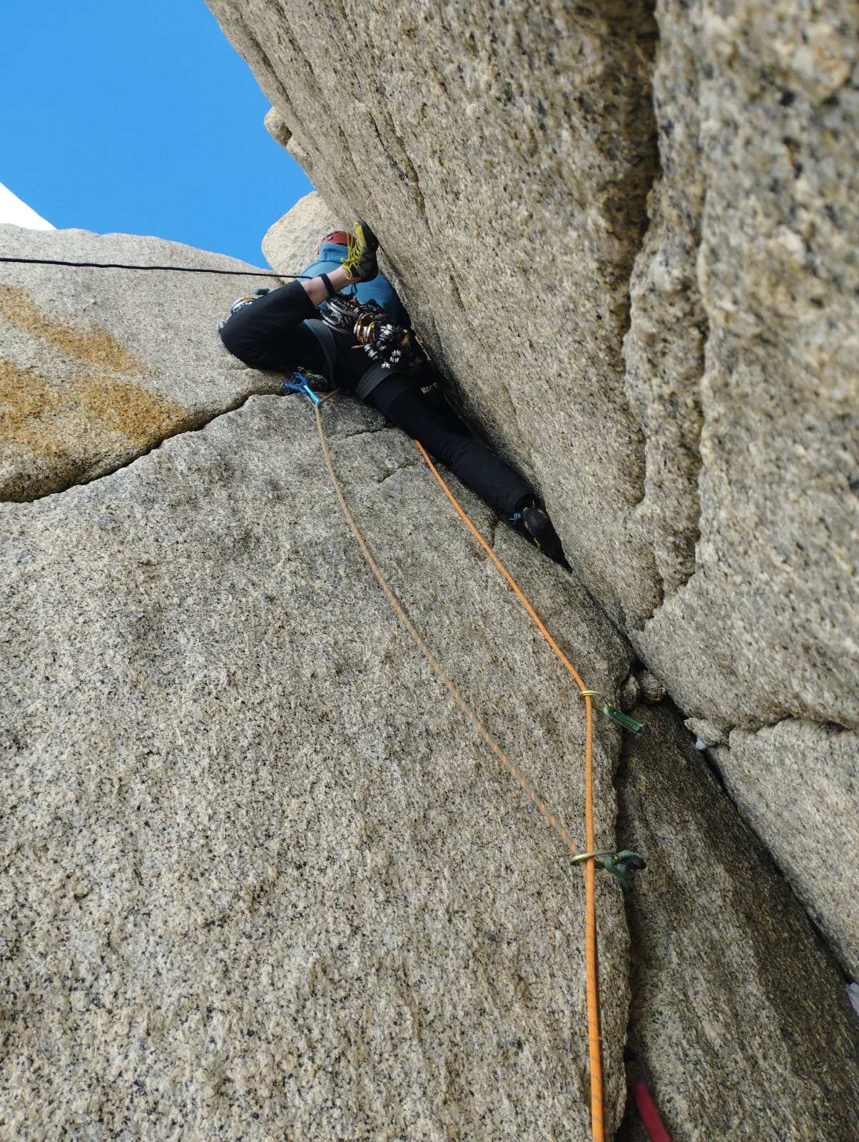 In realtà non per forza bisogna arrivare in cima, l'esperienza è stata comunque incredibile, anche solo per la bellezza dei luoghi che abbiamo visitato. Comunque, la sera del 26 Alessandra, Max e Marco sono stati male e così il 27 ho fatto squadra con Jack [Meliffi, ndr], che aveva visto una bella linea sulla Aguja Media Luna. Abbiamo aperto una variante alla via Rubio y azul per una fessura su una faccia vergine. Sono circa 200 metri di fessure, anche quasi strapiombanti, difficoltà fino a 7a che abbiamo scalato in trad. Anche le soste erano rimovibili, abbiamo lasciato pulito. Sono circa 6 tiri ancora da liberare, si ricongiunge alla linea principale sulla prima spalla.