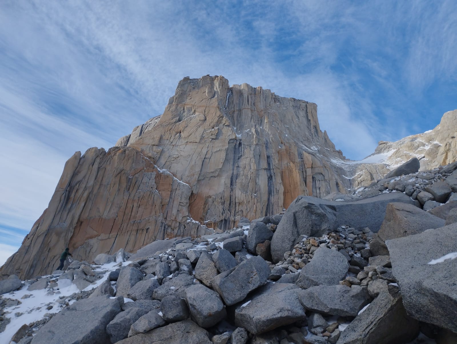 Con Alessandra [Prato, ndr] e Max Faletti abbiamo provato a sfruttare la finestra di bel tempo che gli altri hanno usato per il Piergiorgio e siamo andati a scalare su El Mocho. Ma la via era in condizioni molto invernali, intasata di neve e di ghiaccio e non siamo arrivati in cima nemmeno in quell'occasione.