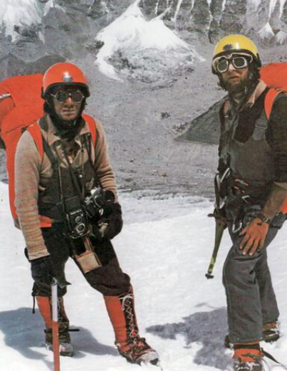 Jurek Kukuczka (sx) e compagno negli anni '80 indossano occhiali protettivi sull'Himalaya © Filippo Del Vecchio