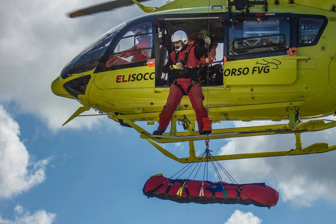 L'intervento in elicottero © Soccorso alpino Friuli Venezia GiuliaNon ce l’ha fatta l’escursionista austriaco di 76 anni, originario della regione della Carinzia, che nel primo pomeriggio di ieri (20 settembre 2023), è scivolato alla fine del sentiero che scende dalla Cima di Terrarossa, a 1.800 metri di quota, nel comune di Chiusaforte (Udine). Cadendo nel vuoto per una settantina di metri, e morendo sul colpo. All’origine dell’incidente, pare ci sia stato un malore, in seguito al quale l’uomo sarebbe inciampato.