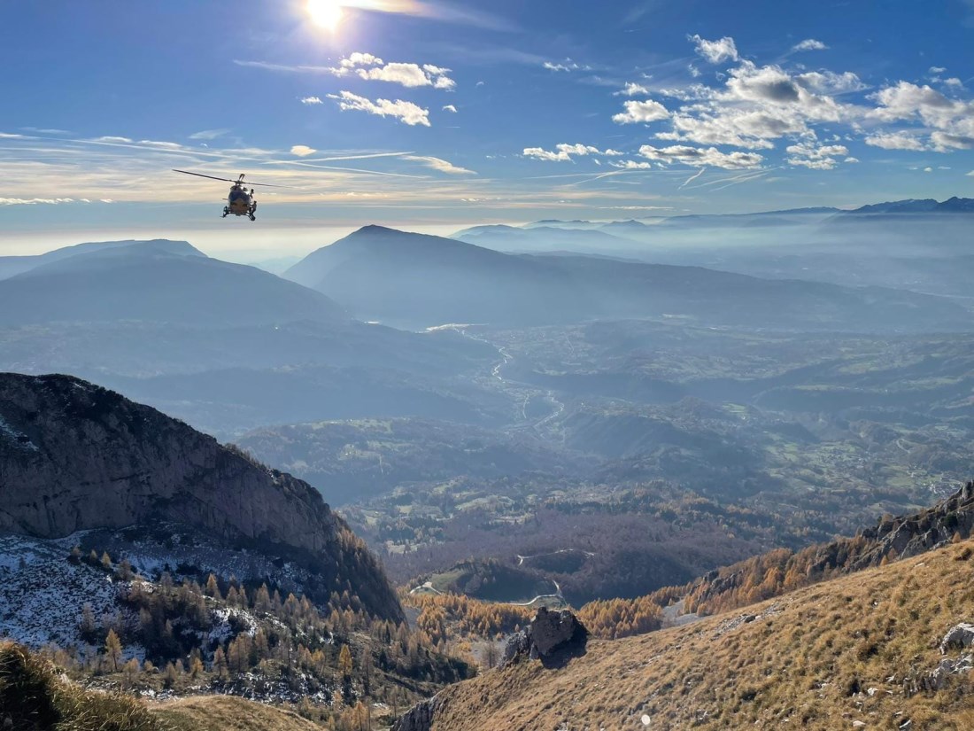 L'elicottero ha riportato a valle il compagno di escursione © Soccorso alpino VenetoÈ un medico di 75 anni di Conegliano (Tv) la vittima dell'incidente mortale di ieri pomeriggio (19 novembre 2023) sotto il Cimon da Piai, nella zona dell'Alpago (Belluno). L'uomo è scivolato mentre percorreva il sentiero 928 insieme a un amico, finendo un centinaio di metri più sotto.