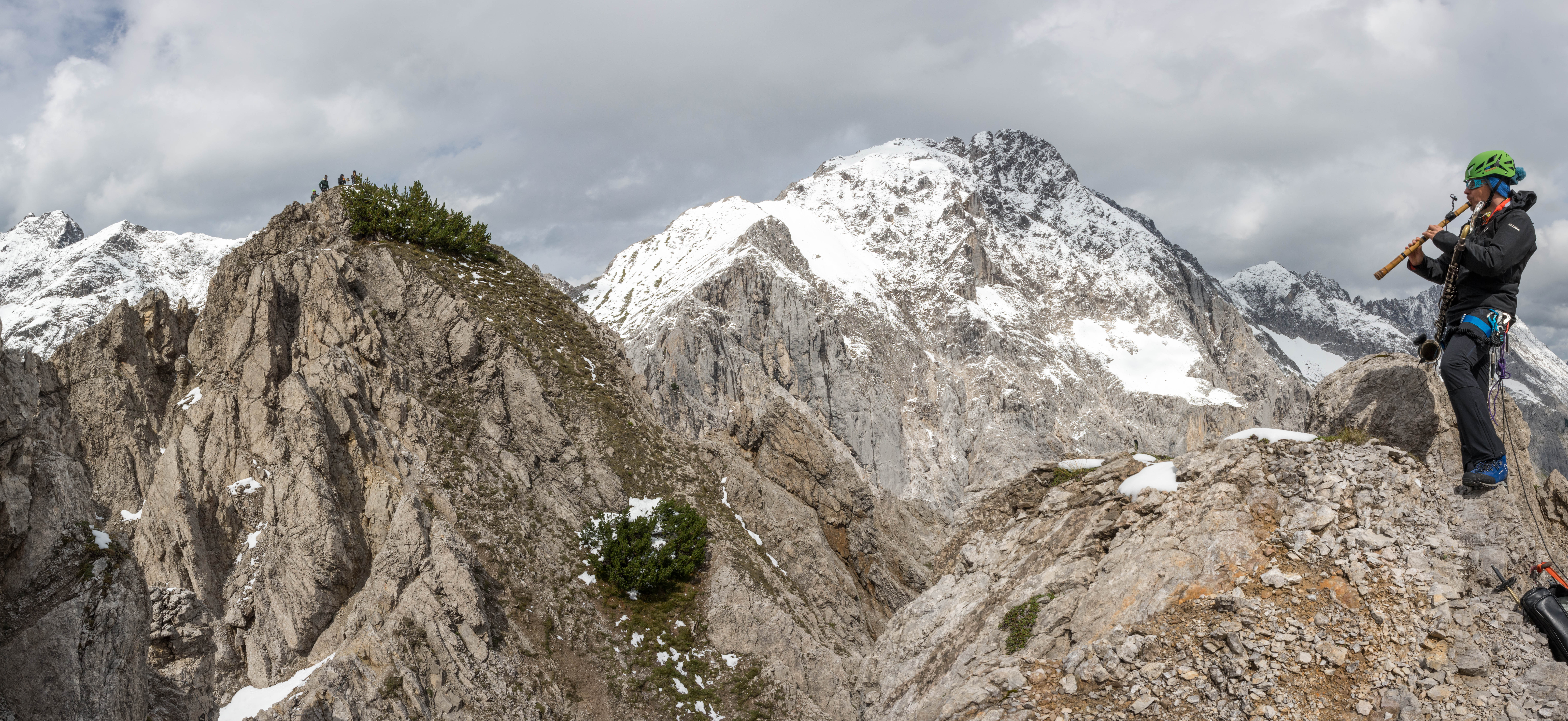 Manu Delago, pioniere dell’hang (handpan) e geniale musicista, ha realizzato un film unico e stupefacente, in cui guida un ensemble composto da sette musicisti in una ascensione sulle Alpi. Durante la salita, il gruppo esegue, a diverse altitudini, un repertorio di composizioni inedite. Molteplici gli esempi di connubio fra musica e montagna così come quelli fra alpinisti/musicisti, solo per citarne alcuni: Julius Kugy, Leone Sinigaglia, Ettore Zapparoli, Gabriele Boccalatte, Ettore Castiglioni, Massimo Mila, Denis Urubko, Nicolas Favresse e tanti altri ancora. Ma torniamo a Parasol Peak. Una sinfonia in sette movimenti che si sviluppa e si adegua mirabilmente alle variazioni di quota e all’ambiente, una partitura musicale che si intreccia con la natura e si insinua negli elementi presenti, natura che con i suoi suoni diviene parte integrante della armonia. E non solo: il suono, inoltre, proviene dalle attrezzature alpinistiche utilizzate, come i caschi, le piccozze, i moschettoni, le corde d’acciaio della ferrata, i bastoncini ….