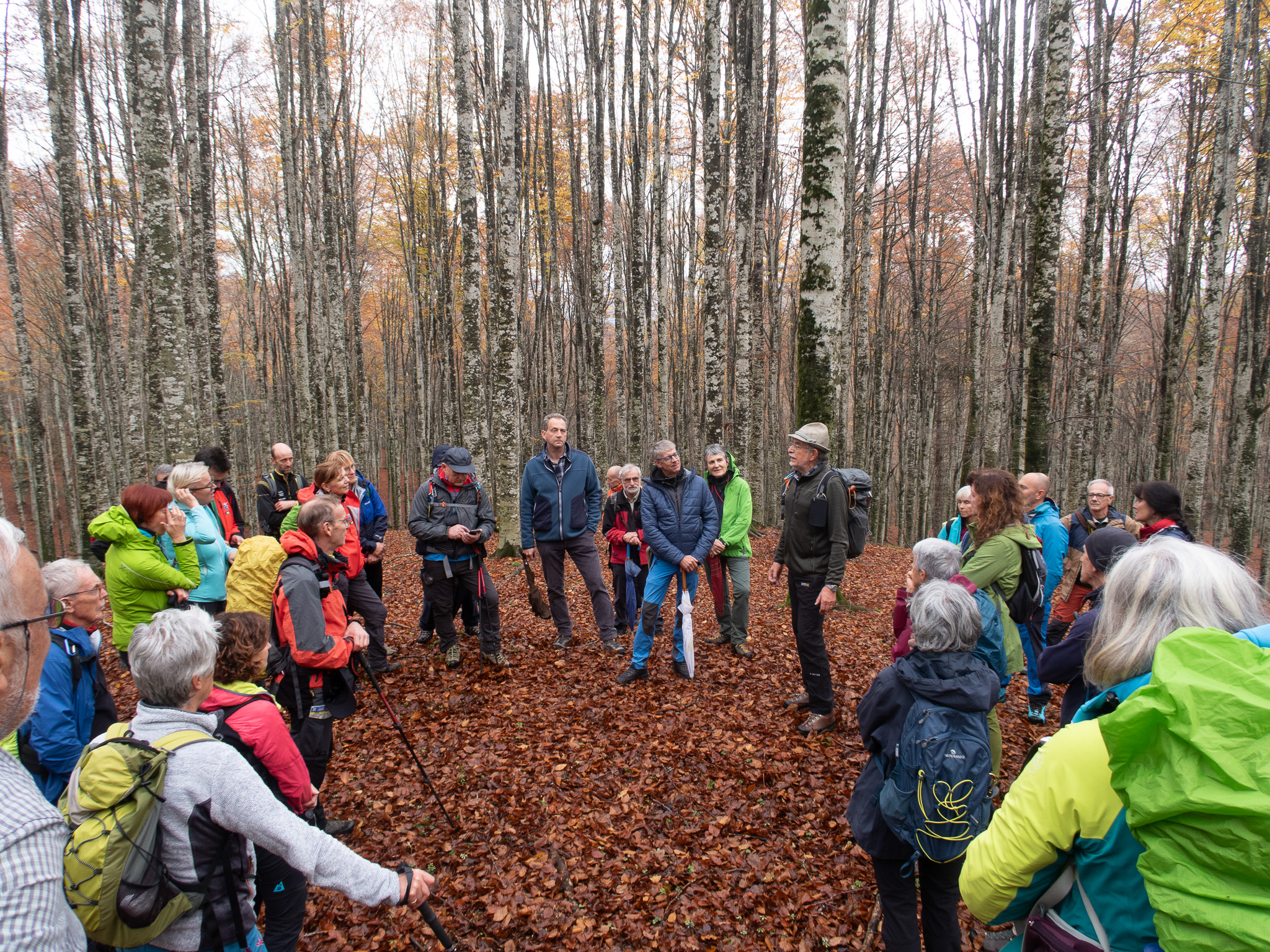 La seconda parte della giornata si è conclusa con un’uscita nel bosco coordinata dallo stesso Mezzavilla che ha letteralmente incantato i partecipanti con i suoi aneddoti e la sua capillare conoscenza delle dinamiche che regolano la Foresta del Cansiglio. Interessanti i suoi spunti che hanno portato alla luce come anche qui i cambiamenti climatici si stiano facendo sentire con variazioni osservate in tempi temporalmente ristretti.