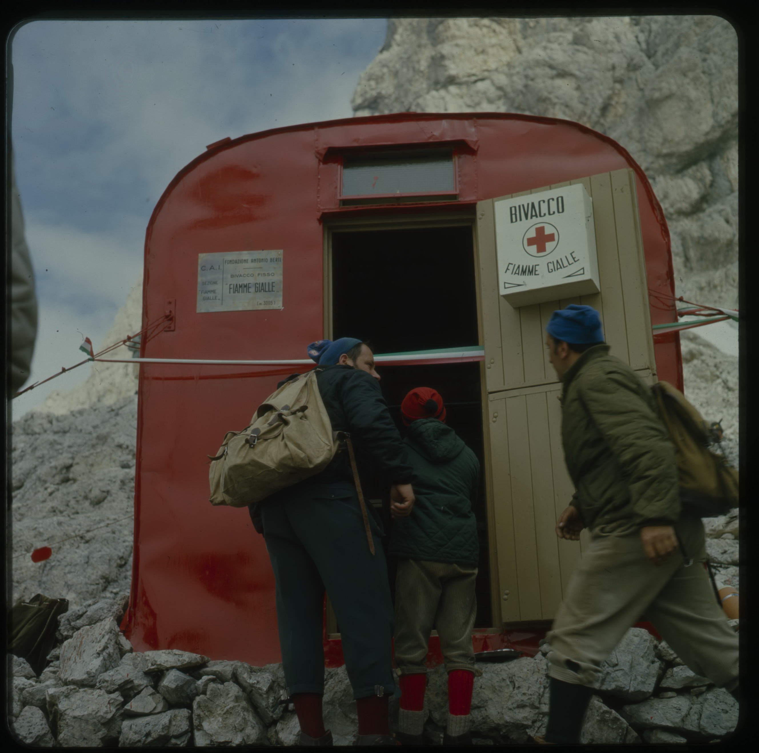 Inaugurato nel 1968, il Bivacco Fiamme Gialle era stato progettato secondo il modello “Berti”, ideato dall’ingegner Giorgio Baroni negli anni Venti, e realizzato grazie alla collaborazione tra la Sezione CAI Fiamme Gialle, vari enti territoriali e la Fondazione Antonio Berti di Padova.