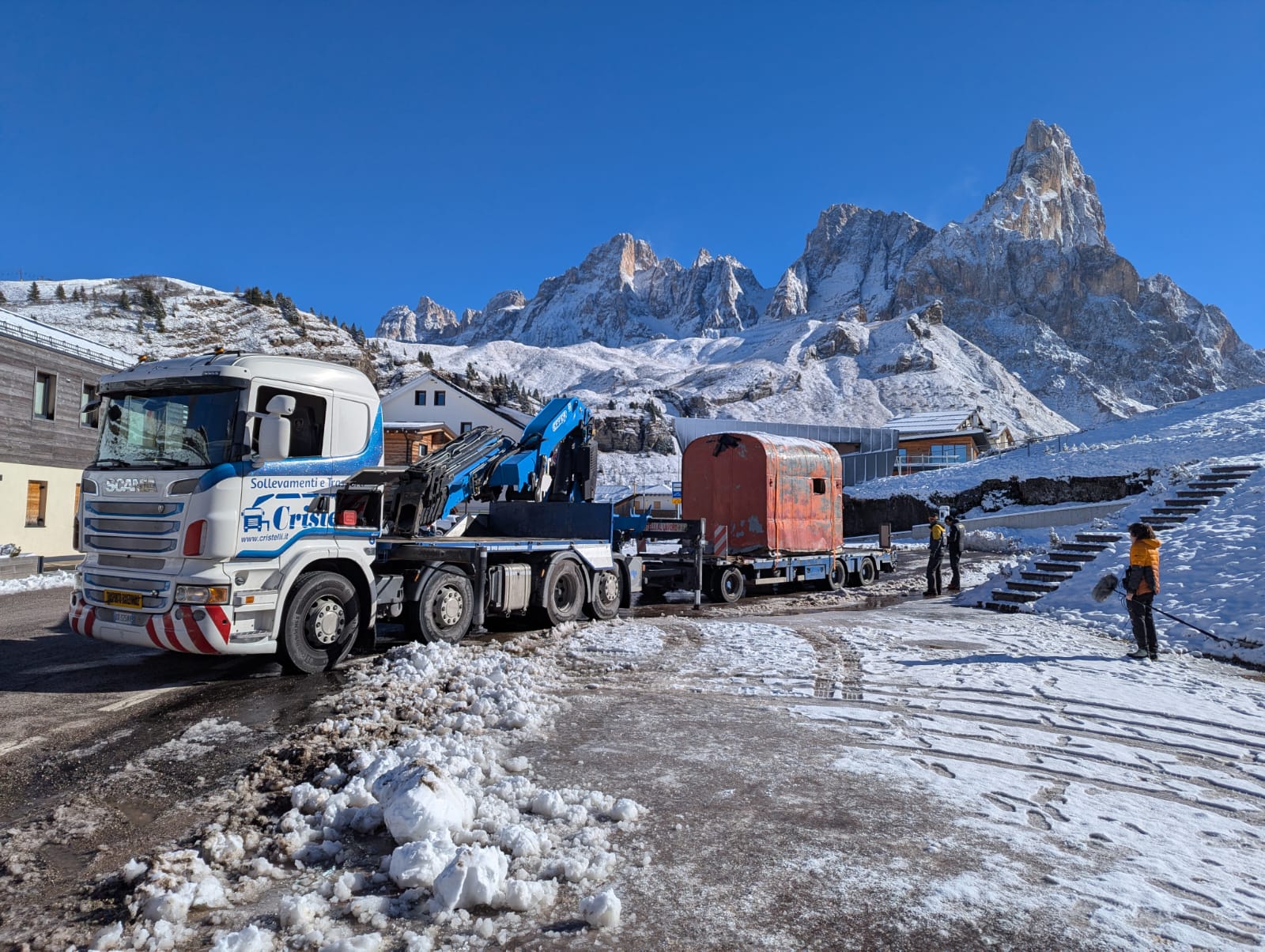 Lunedì 3 novembre la storica struttura è stata trasportata dapprima in elicottero fino a Passo Rolle, quindi caricata su un camion del Servizio per il Sostegno Occupazionale e la Valorizzazione Ambientale della Provincia autonoma di Trento e infine issata, grazie a una gru, sulla sommità del museo. Qui sarà presto visitabile dal pubblico, ricostruita fedelmente con le otto brande e le coperte originali, per restituire l’atmosfera autentica delle notti in alta quota.