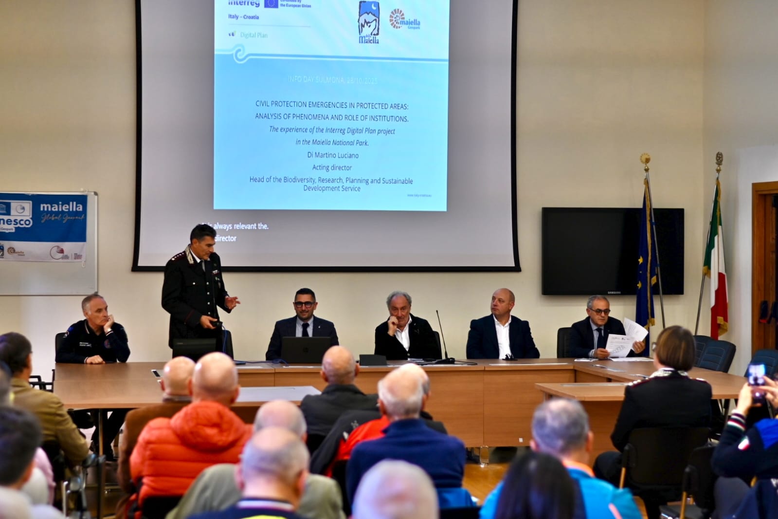 L’evento, ospitato tra Sulmona e Lama dei Peligni, si è aperto martedì 28 ottobre presso la sede operativa del Parco nell’Abbazia di Santo Spirito al Morrone con l’Info Day dal titolo “Le emergenze di protezione civile nelle aree protette: analisi dei fenomeni e ruolo delle istituzioni – L’esperienza del progetto Interreg Digital Plan nel Parco Nazionale della Maiella”.