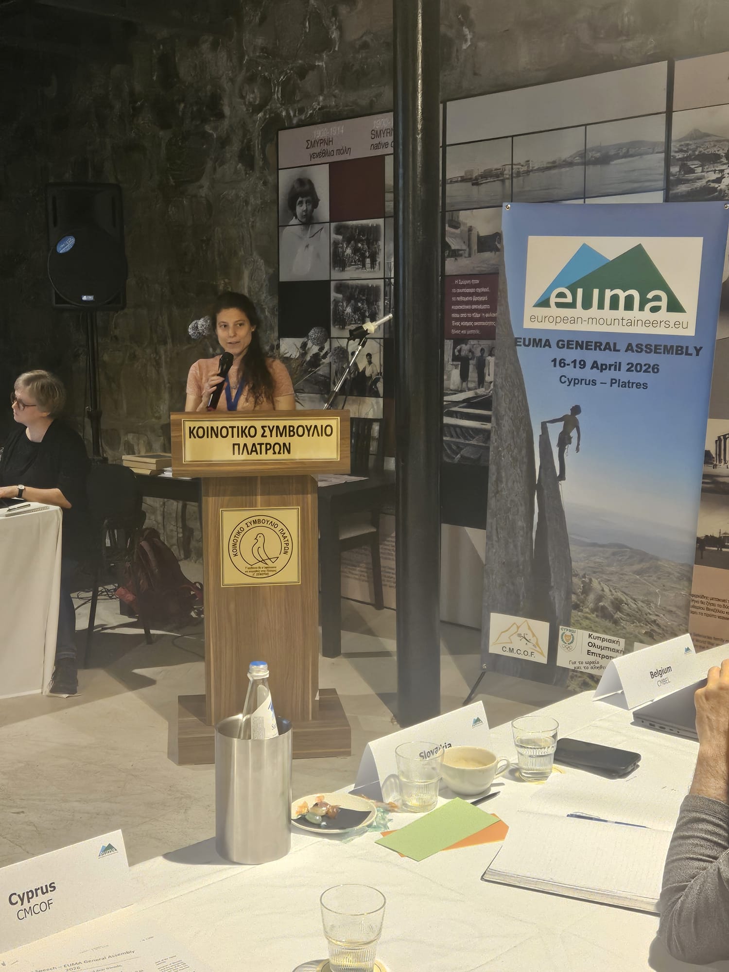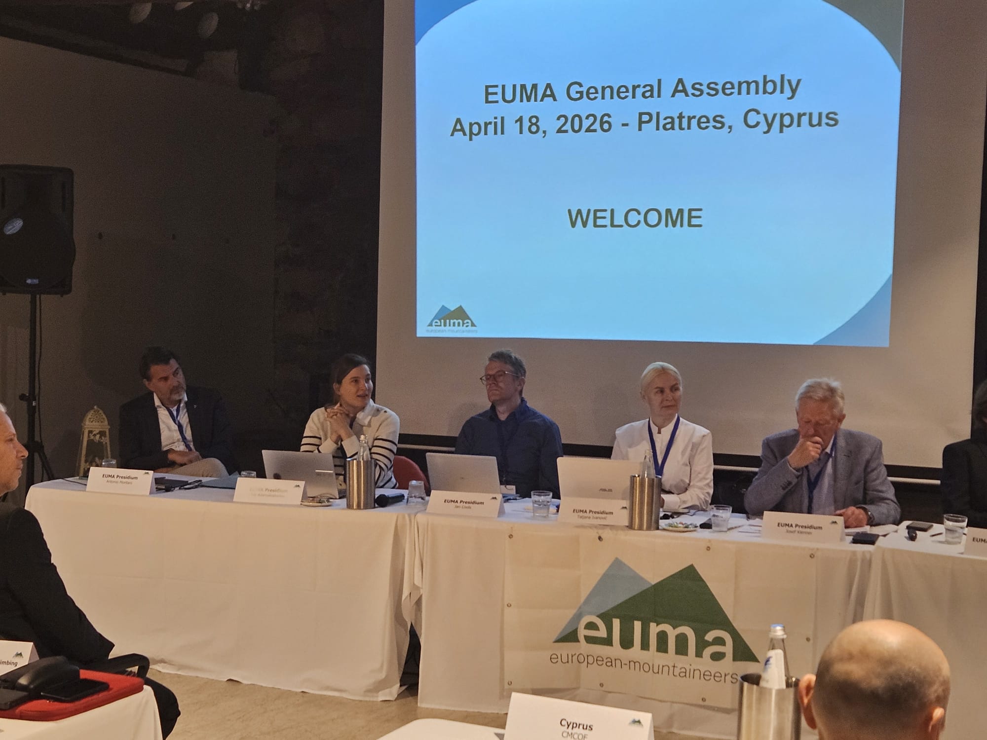 Oggi, 18 aprile, si è tenuta a Cipro, nella località montana di Plano Platers, l'assemblea generale della European Mountaineering Association. Per il sodalizio hanno partecipato, oltre al presidente generale del CAI Antonio Montani, che ricopre la carica di vicepresidente di EUMA, il delegato Davide Avagnina e la nostra socia Silvia Bontà. Numerosa la rappresentanza delle 34 associazioni che raggruppano circa 4 milioni di soci.