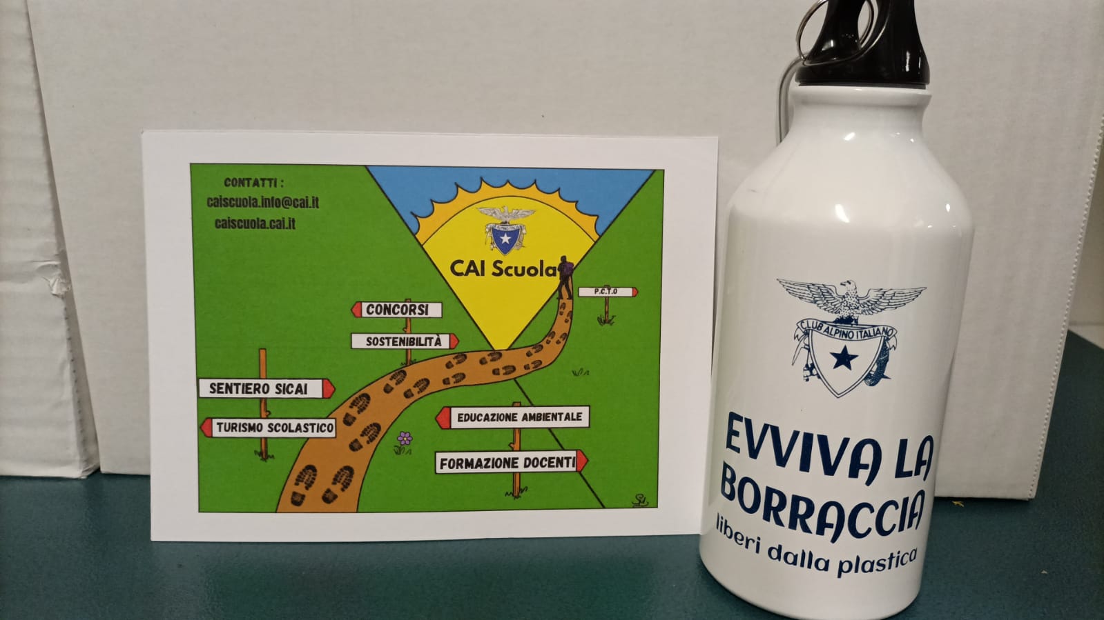 “Evviva la borraccia” rappresenta un impegno del Cai che, attraverso il simbolo della borraccia e del suo riuso negli anni, contrasta il generale inquinamento in ambiente. Si indica di ridurre l'uso di bottiglie di plastica in montagna, nello zaino, in escursione e nelle attività didattiche. In collaborazione con il mondo della scuola si attua un’importante opera di sensibilizzazione per una efficace comprensione delle implicazioni economiche, delle conseguenze sull’ambiente e delle possibilità offerte da tecnologia e materiali. Questo grazie anche all'avvicinamento alla montagna proposto dal Club Alpino italiano e attuato dal Gruppo di lavoro CAI Scuola è quanto di più efficace ed utile per conoscere, percorrere, amare e tutelare le "Terre Alte".