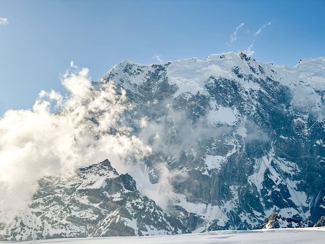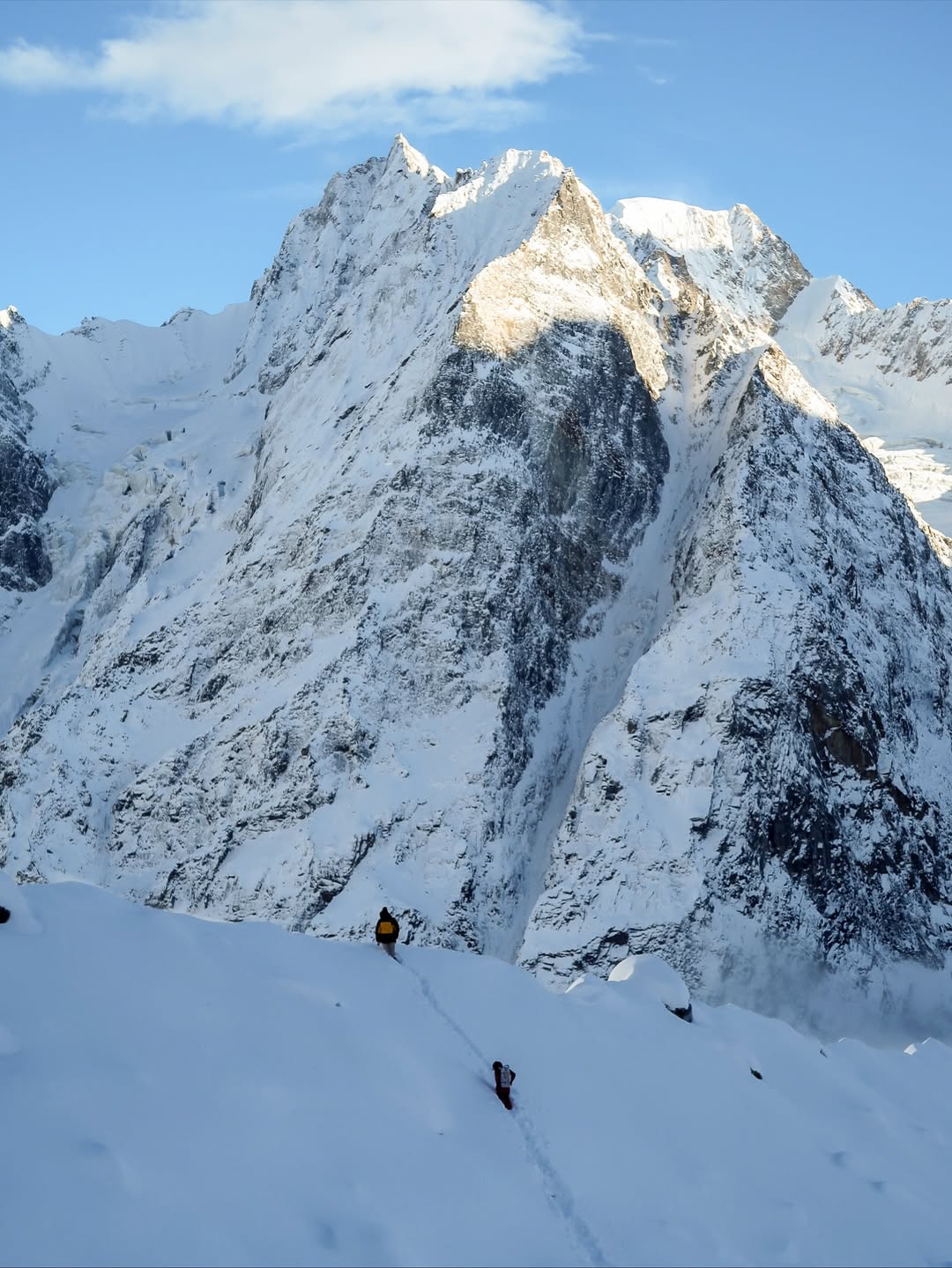 Ma per Manners la spedizione non era ancora finita. Invece di arrendersi, decide di salire di provare una salita in solitaria. Nasce così la Asha Traverse, che in hindi significa “speranza”. Una linea affilata di oltre due chilometri, con pendii che precipitano su entrambi i lati, alternando tratti di neve dura a zone di polvere. Alcuni passaggi misti, valutati AD 5a, richiedono precisione e calma assoluta. “Ero solo io, una cresta inesplorata e il silenzio delle montagne” ha raccontato l’alpinista dopo aver concluso la traversata, lo scorso 18 ottobre.