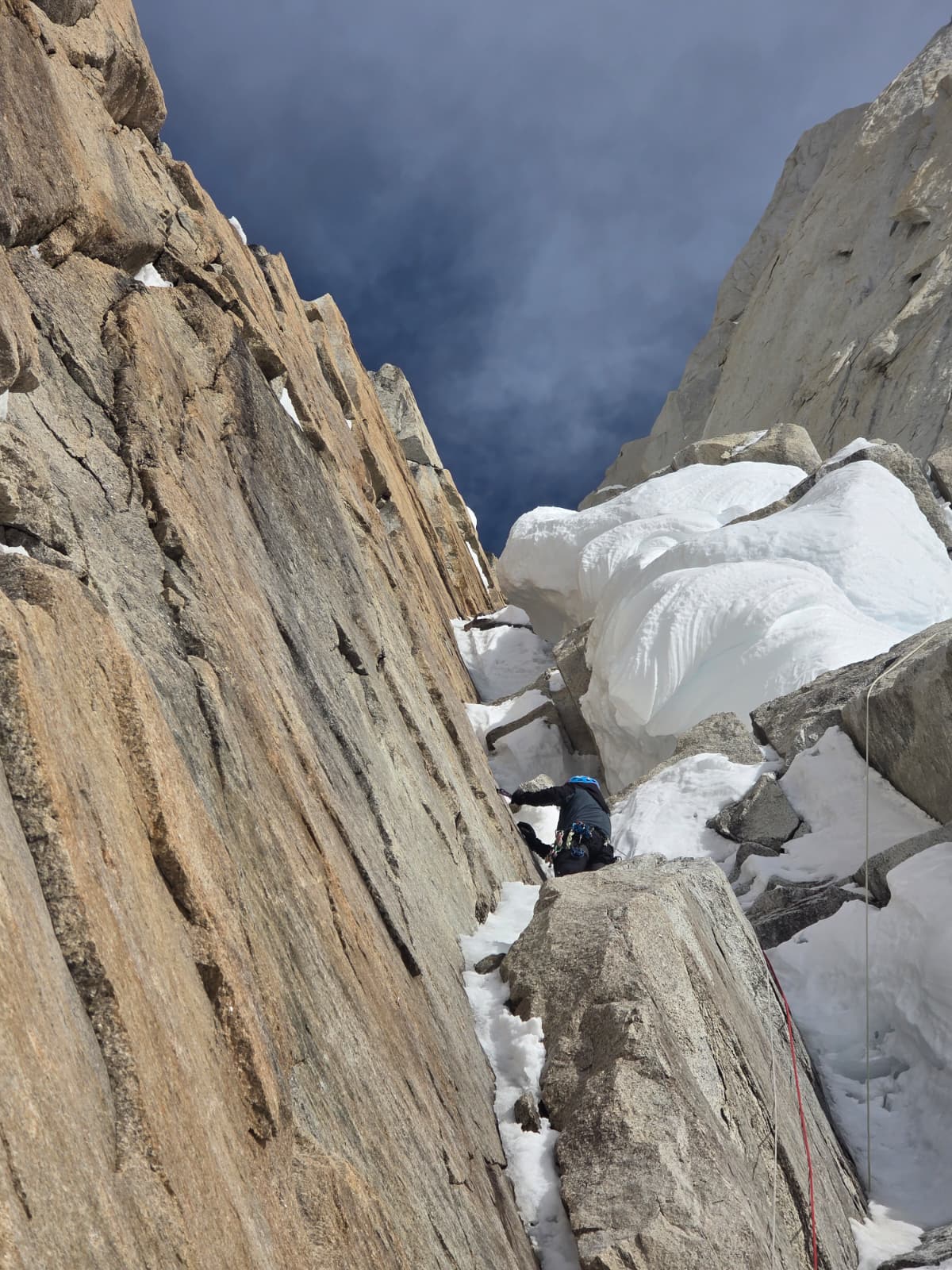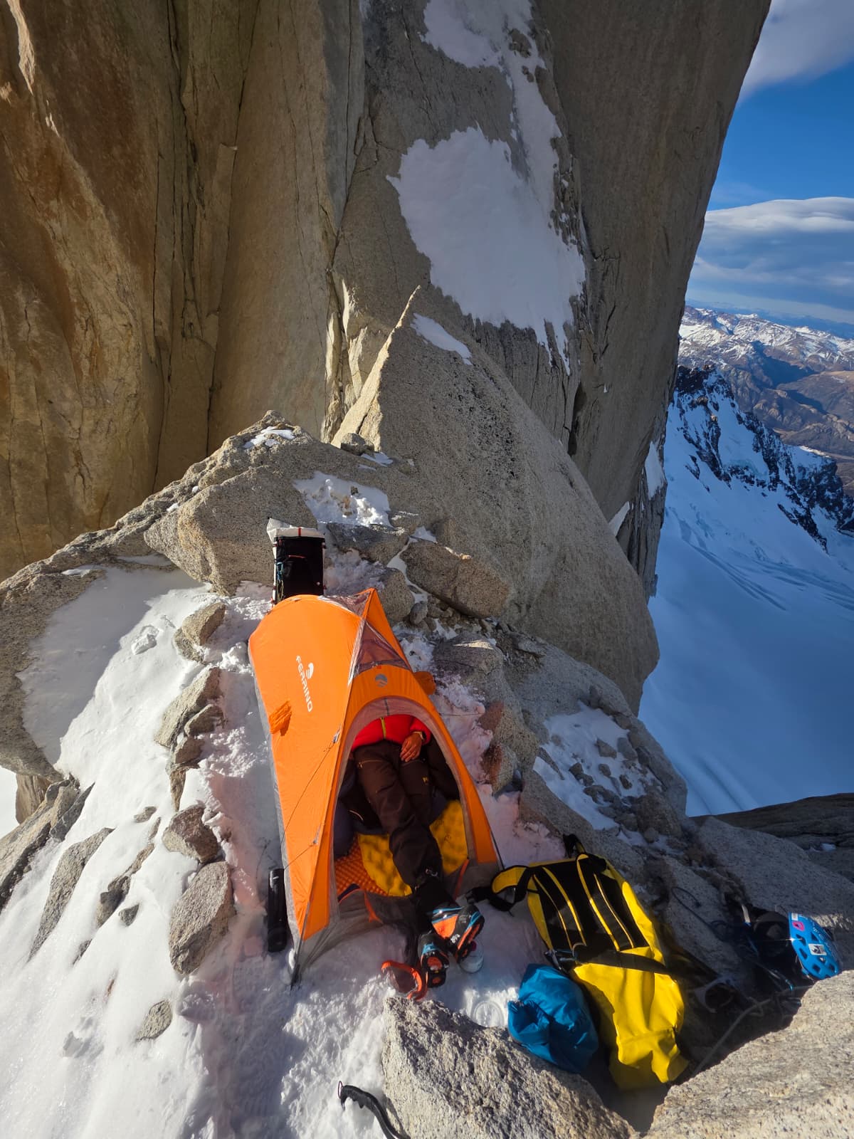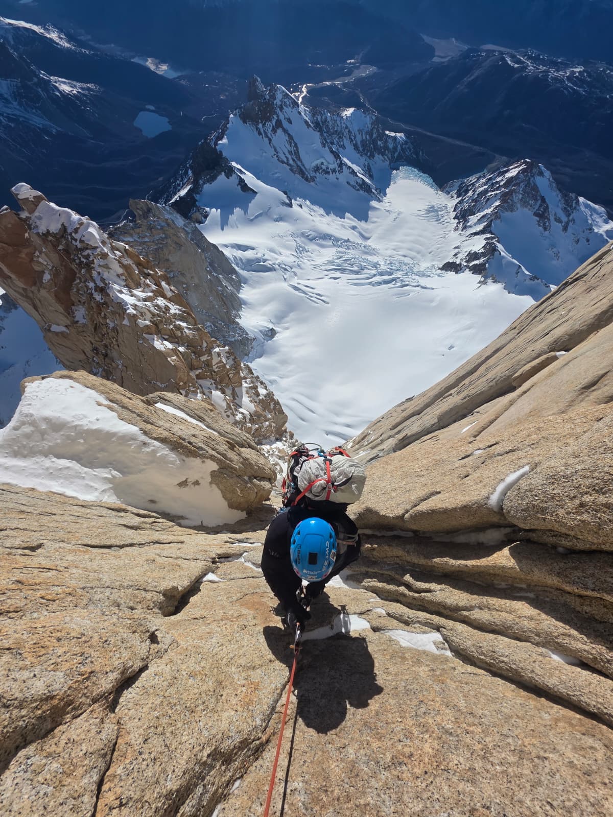 "Già nei primi giorni, con Tommy, avevamo fatto un bellissimo tentativo, e solo quello sarebbe valso la spedizione" commenta Della Bordella. "Trovarsi in parete in inverno, tra il freddo e la solitudine, è stato incredibile: ci si sente minuscoli di fronte a queste montagne immense. Poi sono arrivate le difficoltà, la finestra di bel tempo che non si apriva, le incertezze. Ma in Patagonia bisogna tenere duro fino all’ultimo, e alla fine la determinazione ha pagato. È stata una salita bellissima, come in estate, ma con giornate più corte e temperature molto più dure: di notte il termometro scendeva a –15/–20 °C, mentre nelle ore centrali al sole arrivavamo a +5. Partire al mattino presto non era facile. La via resta la stessa – 35 tiri e 1300 metri di parete – ma d’inverno hai la metà del tempo per scalare. Una sfida incredibile, resa ancora più significativa dal fatto di ripercorrere le orme di un alpinista come Casarotto e di averlo fatto per primi in inverno, nello stile che lui amava".