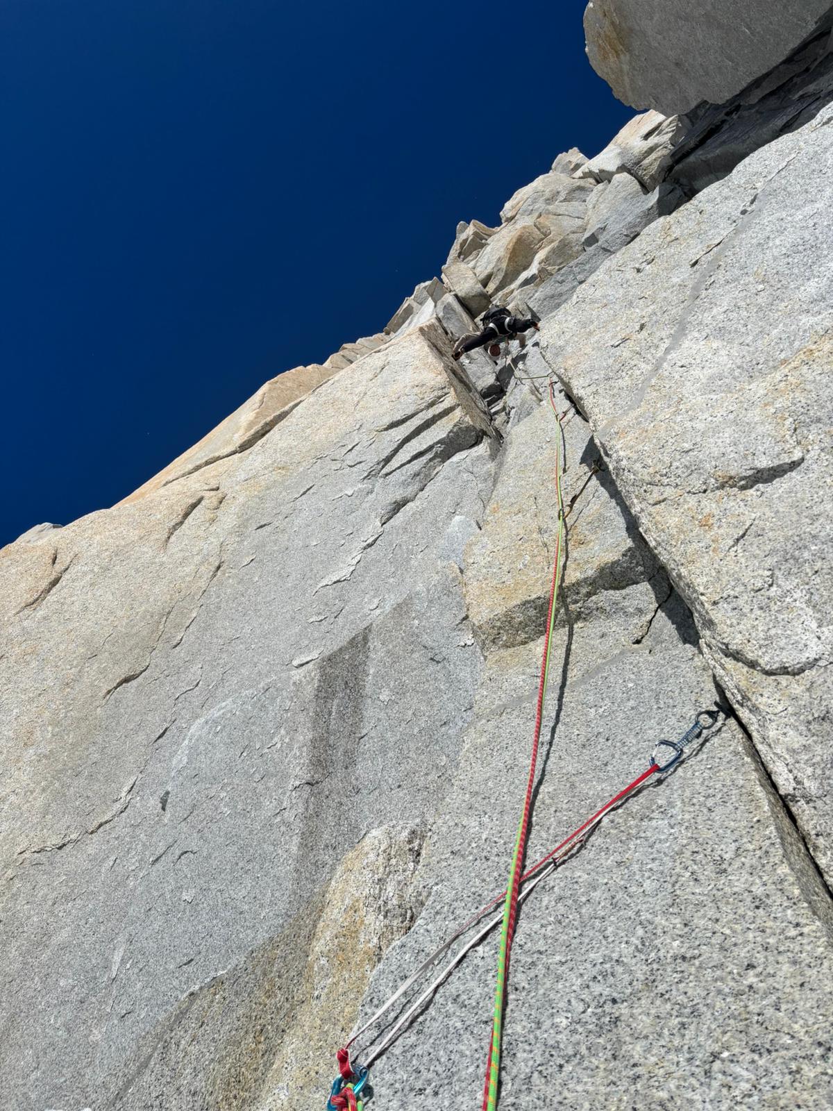 Schiera non fa mistero del fascino esercitato dalla via nelle dieci ore impiegate per la salita. “L'arrampicata in sé non è certo fra le migliori ma trovare i chiodi originali è stata una emozione pazzesca, mi sembra di rileggere le parole degli scritti Terray, anche se fu Magnone a tirare buona parte della via. Siamo saliti in libera trovando difficoltà fino al 7a circa per 15 tiri totali, con diversi tratti saliti in conserva. Senza vento e con una piacevole temperatura decidiamo di concludere la giornata con uno scomodo ma panoramico bivacco alla Brecha de los Italianos prima di scendere la mattina successiva”. La ripetizione di Schiera e Colico conferma il racconto della prima salita nella modalità con cui è stata effettuata. “Effettivamente sui primi tiri abbiamo trovato diversi chiodi, anche perché per andare su veloci non schiodavano. Ci sta che alla fine scarseggiassero. Mettere mani e piedi sulla via è stata comunque una ulteriore conferma del loro valore. Al tempo è stata la prima arrampicata in senso stretto nel gruppo e anche il fatto che si fossero avventurati solo in due, testimonia un gran coraggio. Anche la discesa non è per niente banale, questa ripetizione non ha fatto altro che aumentare la mia ammirazione per quella che fu una vera e propria impresa”.