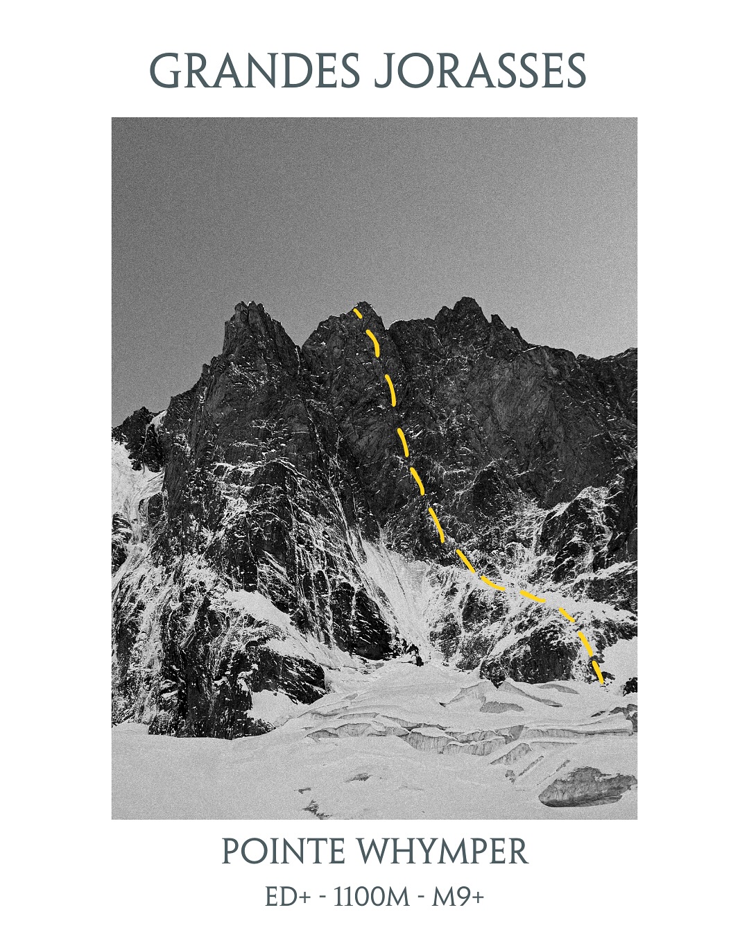 Aperta nel gennaio 1974 da Yannick Seigneur, Louis Audoubert, Michel Feuillarade e Marc Galy, la Directe de l’Amitié risale 1100 metri di roccia e misto fino alla Pointe Whymper. La via combina difficoltà di VII su roccia, sezioni miste fino a M7, passaggi di A2 e un famigerato tiro di A3 strapiombante, considerato impossibile da liberare per decenni. Non a caso era considerata la via più difficile delle Grandes Jorasses. Nel 2022 Benjamin Vedrines, Leo Billon e Seb Ratel avevano tentato la libera ma si erano dovuti arrendere al tiro A3, riuscendo a liberare tutto il resto fino a un impressionante livello M8, ma senza nemmeno tentare quel passaggio senza l’aiuto dell’artificiale.