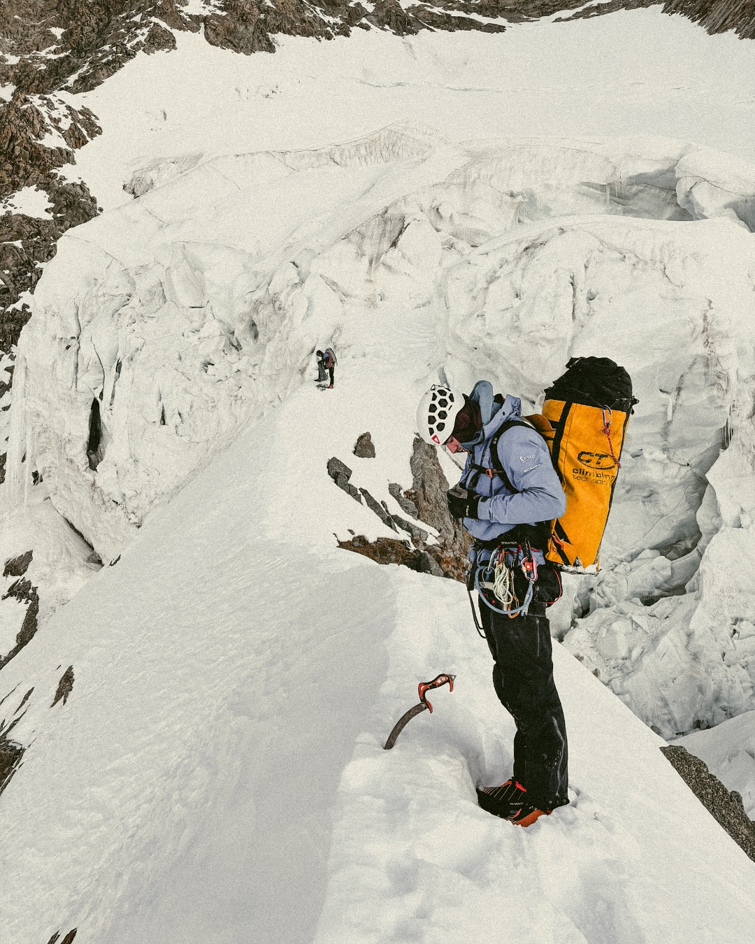 Dopo un secondo bivacco sospeso, la squadra ha affrontato gli ultimi tratti: altri strapiombi, diedri ghiacciati, blocchi instabili. Poi, finalmente, la cresta sommitale, raggiunta nel buio totale.