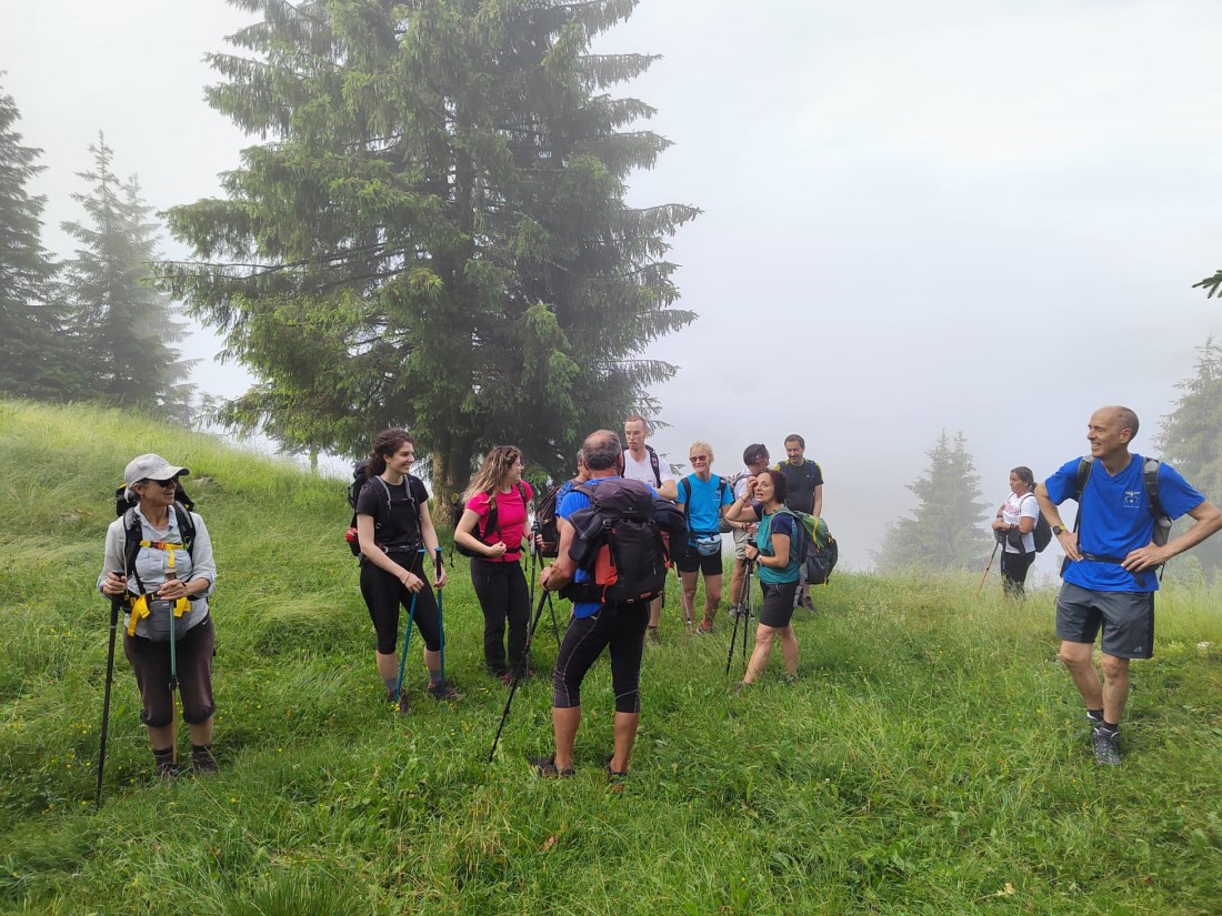 I camminatori, almeno una trentina, si sono inerpicati lungo il sentiero n.260 che conduce in località “Forcella bassa” (mt 1306). Da qui il percorso si inerpica su lunghi pendii immersi nei prati e crinali accompagnati dalla nebbia: sullo sfondo, il monte Alben, la Cima Golla, il Matto di Golla, Pulpito, Cima Foppazzi e Cima Grem. Lungo il sentiero sono i rifugi e i bivacchi a farla da padrone: la Baita di Golla a 1756 metri,. Il Bivacco Mistri a mt. 1790 e il bivacco Telini a 1647.