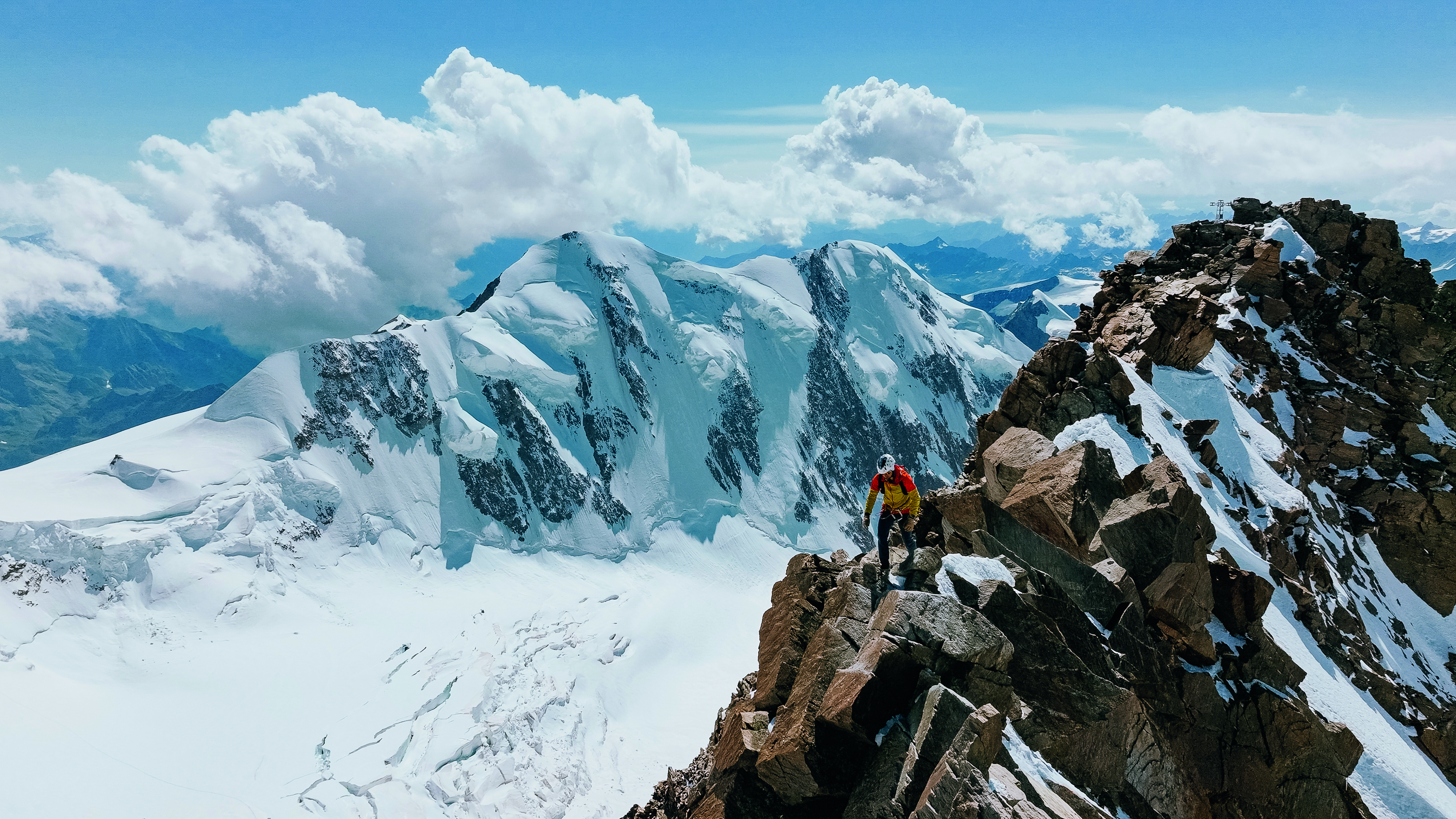 Sulla Punta Dufour durante il primo concatenamento in giornata delle Creste Sud del Monte Rosa. Foto Damiano Levati