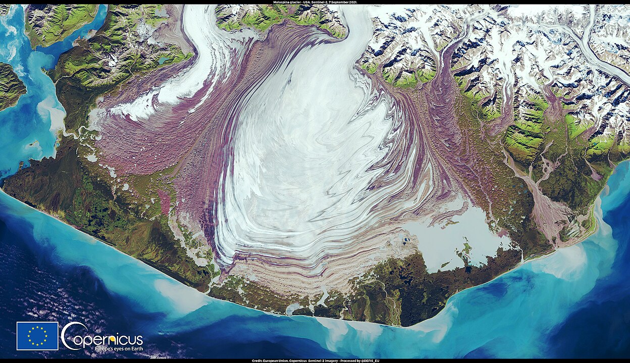 Una immagine del ghiacciaio Malaspina da Copernicus Sentinel (data 2021) - Wikimedia CommonsI ghiacciai sono spesso immaginati come componenti immutabili dell’ambiente d’alta quota. Silenziose masse di ghiaccio perenne, eredità di un passato decisamente più freddo dell’era moderna. Una percezione che non potrebbe essere più lontana dalla verità. Un ghiacciaio, per sua stessa definizione, è un corpo di ghiaccio vivo e dinamico, che deve fluire, scorrendo da monte verso valle, per effetto del suo stesso peso. Se un ghiacciaio smette di muoversi, cessa di essere un ghiacciaio attivo e perde anche la denominazione di ghiacciaio. È il caso, ad esempio, del glacionevato o meglio dei glacionevati che oggi costituiscono quello che fu il ghiacciaio del Calderone sul Gran Sasso.