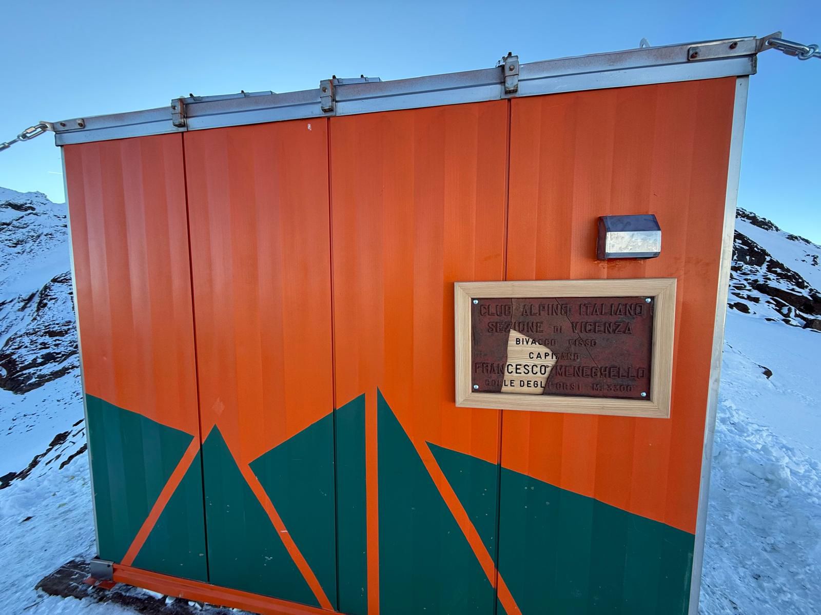 Completamente restaurato e riposizionato, il nuovo bivacco sorge a oltre 3.300 metri di quota, in un’area di grande valore ambientale e scientifico. Realizzato in acciaio inox coibentato e con una capacità di nove posti letto, è accessibile a tutti ma pensato in particolare per alpinisti e ricercatori che operano in alta quota, in condizioni spesso difficili. La struttura si affaccia su uno dei luoghi più significativi per lo studio dei ghiacciai e per l’osservazione ambientale, lungo il percorso alpinistico delle Tredici Cime.
