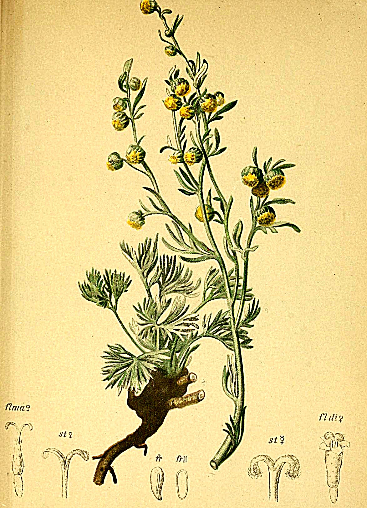 Scheda botanica dell'Artemisia umbelliformis - Foto Anton Hartinger - Atlas der Alpenflora - Wikimedia Commons, Public Domain,