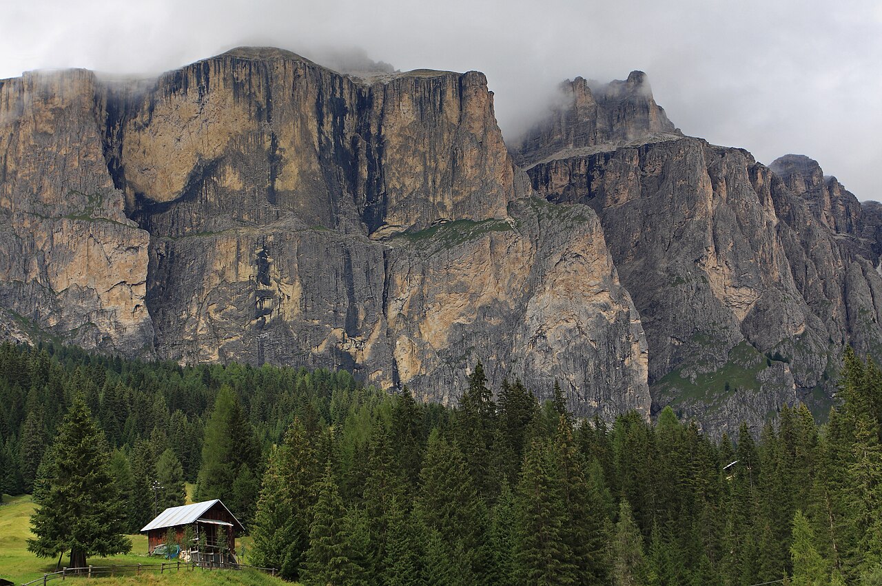 Foresta di conifere ai piedi del Gruppo del Sella, nelle Dolomiti © Srdjan Marincic, Wikimedia
