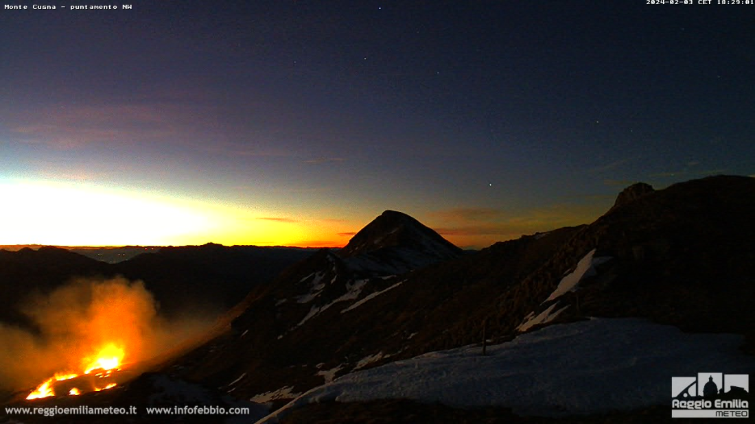 Il rogo del Monte Cusna nella sua fase iniziale, nel tardo pomeriggio del 3 febbraio 2024 © Reggio Emilia MeteoAlle 16.18 del 3 febbraio 2024, la webcam di Reggio Emilia Meteo immortala un piccolo sbuffo di fumo sale dalla Costa delle Veline, a quota 1800 metri sulle pendici meridionali del Monte Cusna, massima elevazione del Parco Nazionale dell'Appennino Tosco-Emiliano, nel comune di Ventasso (RE).