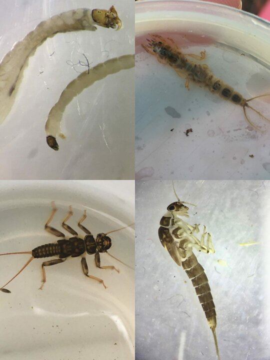 Esempi di macrinvertebrati bentonici che popolano i torrenti alpini e rappresentano degli ottimi indicatori dello stato di salute delle acque. . Foto parcomonviso.eu/ALPSTREAM