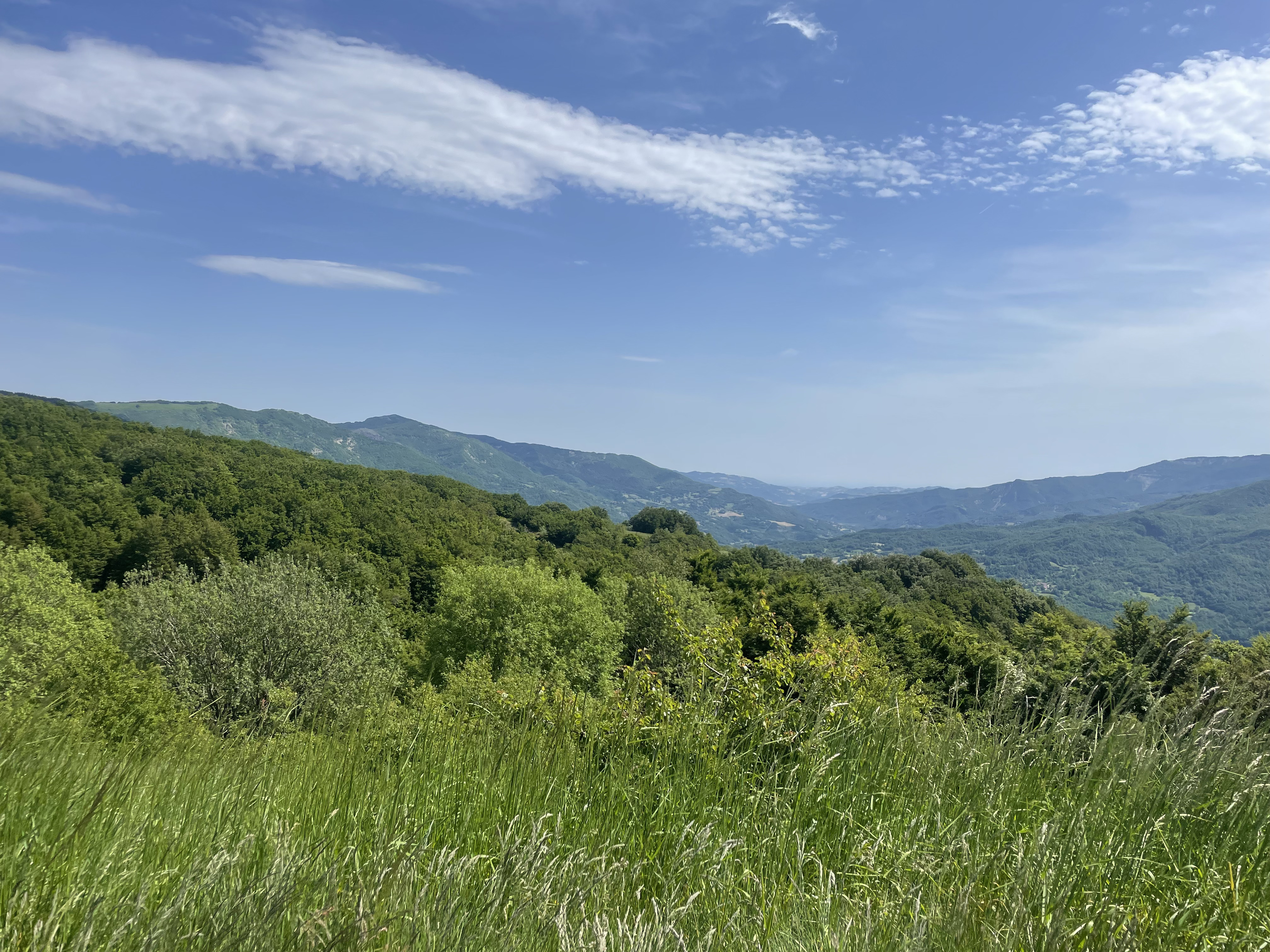 È talmente evidente, il motivo, che fatico a capire come possa averlo dimenticato per tutto il tempo camminato fino a qui e prevede quel sentimento difficile da definire e irregimentare in una frase che è il sentirsi parte di un qualcosa, che noi occidentali abbiamo definito natura, che è più grande di noi, talmente grande da farci sentire piccoli e spesso tanto insignificanti. È una bellissima sensazione, totalizzante ma difficile da toccare, serve immergersi nel cammino con disposizione d’animo e attenzione, però una volta raggiunta è come se ci si sentisse accettati, parte di un mondo conosciuto e al contempo alieno. Trovare le parole non è semplice, non lo è mai quando è il corpo ancor prima della mente a recepire emozioni, quasi le traspirasse dall’ambiente e non mi meraviglierebbe affatto fosse così, e a trasmettere un senso di benessere che avvolge e completa. Lo scrive bene Franco Faggiani nel suo Verso la libertà con un bagaglio leggero, Aboca Editore, quando dice «una positiva sensazione che un lungo cammino mi consente di provare è quella della fusione profonda con l’ambiente circostante, avere idea di farne davvero parte, di non essere un corpo estraneo invadente di cui liberarsi al più presto » e io non posso che provare ad aggiungere del mio ricordando come in una società sempre più individualista – dove ogni persona viene spinta dai social, dalla pubblicità e dalle convenzioni più o meno sociali, a perseguire la solitudine come eccellenza e come completamento di sé, a realizzarsi grazie alle proprie forze, lottare contro tutti per affermarsi, eccellere sopra ogni altro, essere considerato il migliore, e a vedere queste come alcune delle aspettative con cui ogni giorno confrontarsi – aspirare e sentirsi parte di un gruppo, è certamente una eccezione, gradita e importate ma pur sempre eccezione. Necessaria però, perché tornare a essere parte di un sistema ampio che necessiti di relazioni per funzionare al meglio, di supporto per avanzare nelle difficoltà, di organizzazione per affrontare le sfide che la vita propone, dovrebbe diventare la nostra priorità. Non più sfruttamento ma gestione oculata dei beni comuni, avendo ben presente la loro importanza e le necessità che si preservino per le generazioni future. Me lo sussurrano gli alberi facendomi sentire ben accetto, non solo perché stanco posso appoggiarmi a loro, ma perché sembrano indicare la via, proteggere e creare, per quanto possibile, un ambiente dal quale ricaviamo sensazioni di benessere non altrettanto riscontrabili in un ambiente urbano. Lo realizzo lasciando che il vento canti le proprie canzoni, predisponendomi all’ascolto con il giusto stato d’animo. Non c’è, concentrato nel camminare, nell’ascoltare e nel guardare, un ostacolo insuperabile, non una stonatura o un elemento fuori posto. Quella che noi chiamiamo natura sembra parlarci, raccontarci di un mondo diverso da quello che abbiamo creato negli ultimi secoli, un mondo all’interno del quale potremmo vivere riducendo al massimo il nostro impatto e anzi, prendendocene cura, come siamo soliti fare per i nostri giardini. Ecco, proprio la stessa cura dovremmo avere, come se ogni pezzo di terra ci appartenesse e un contratto, di quelli che tanto piacciono alla società moderna, ci obbligasse a garantirne il buon uso e la conservazione. Un discorso ampio me ne rendo conto, non certo risolvibile da una persona sola che però mi tiene compagnia per tutta la discesa fino alla Foce del Fosco (1620 m. slm) raggiunta la quale, invece di proseguire per il sentiero 00, deviamo per tornare indietro completando l’escursione con un giro ad anello che ci porta a passare per I ronchi di Luciano (1530 m. slm) con il sentiero sempre in discesa per poi mettersi in piano e fiancheggiare il Monte Fosco fino ricongiungersi con lo 00 all’altezza della Bocchetta del Tavola.