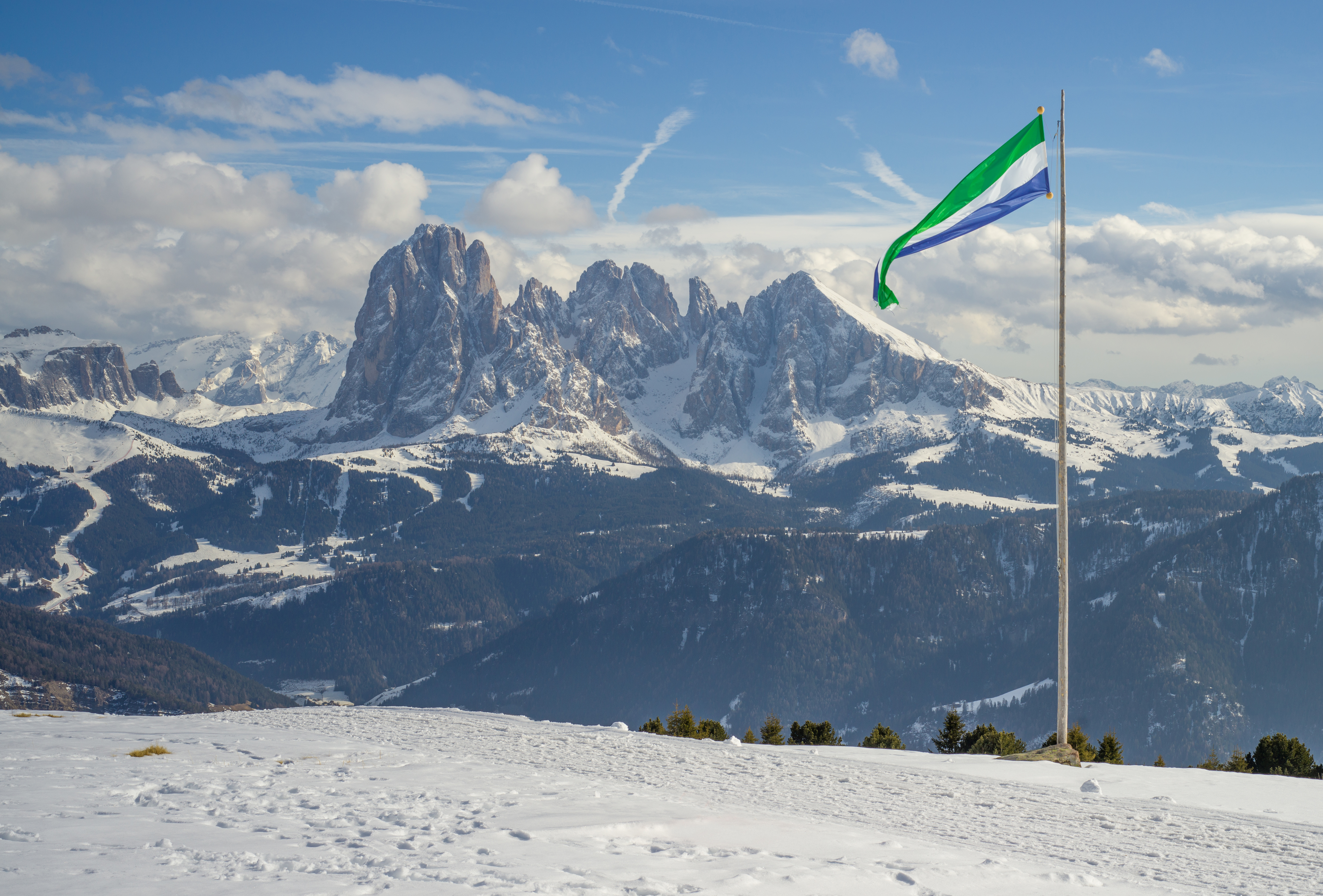 La bandiera LadinaNelle Dolomiti, in poche valli circondate da montagne che si tingono di rosa, la popolazione ladina è stata fra le prime ad antropizzare la regione dolomitica, spinta da esigenze di sopravvivenza e da una straordinaria capacità di adattamento all’ambiente montano. I masi curati, lo speck, lo strüdel, i prati ordinati e il grembiule blu dei contadini, sono immagini che raccontano la vita quotidiana delle valli ladine e rappresentano ciò che, in gran parte, dobbiamo a queste genti. Seppure chiusi in un ristretto territorio, a loro si deve la cura e la conservazione di un territorio arrivato fino a noi quasi intatto, dove la presenza dell’uomo è sempre rimasta in equilibrio con la maestosità delle Dolomiti. Le tracce di questa presenza risalgono addirittura a epoche antecedenti l’Età del Bronzo, a testimonianza di una continuità di vita e cultura profondamente radicata.