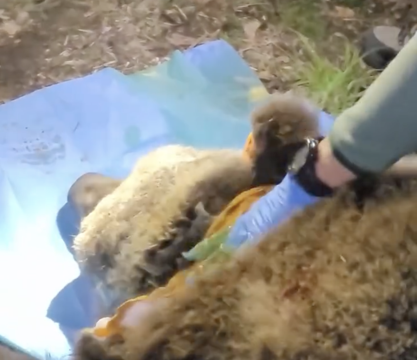 L'esemplare di orso marsicano ferito non appena sedato da tecnici e personale del Parco © Parco Nazionale d'Abruzzo, Lazio e Molise