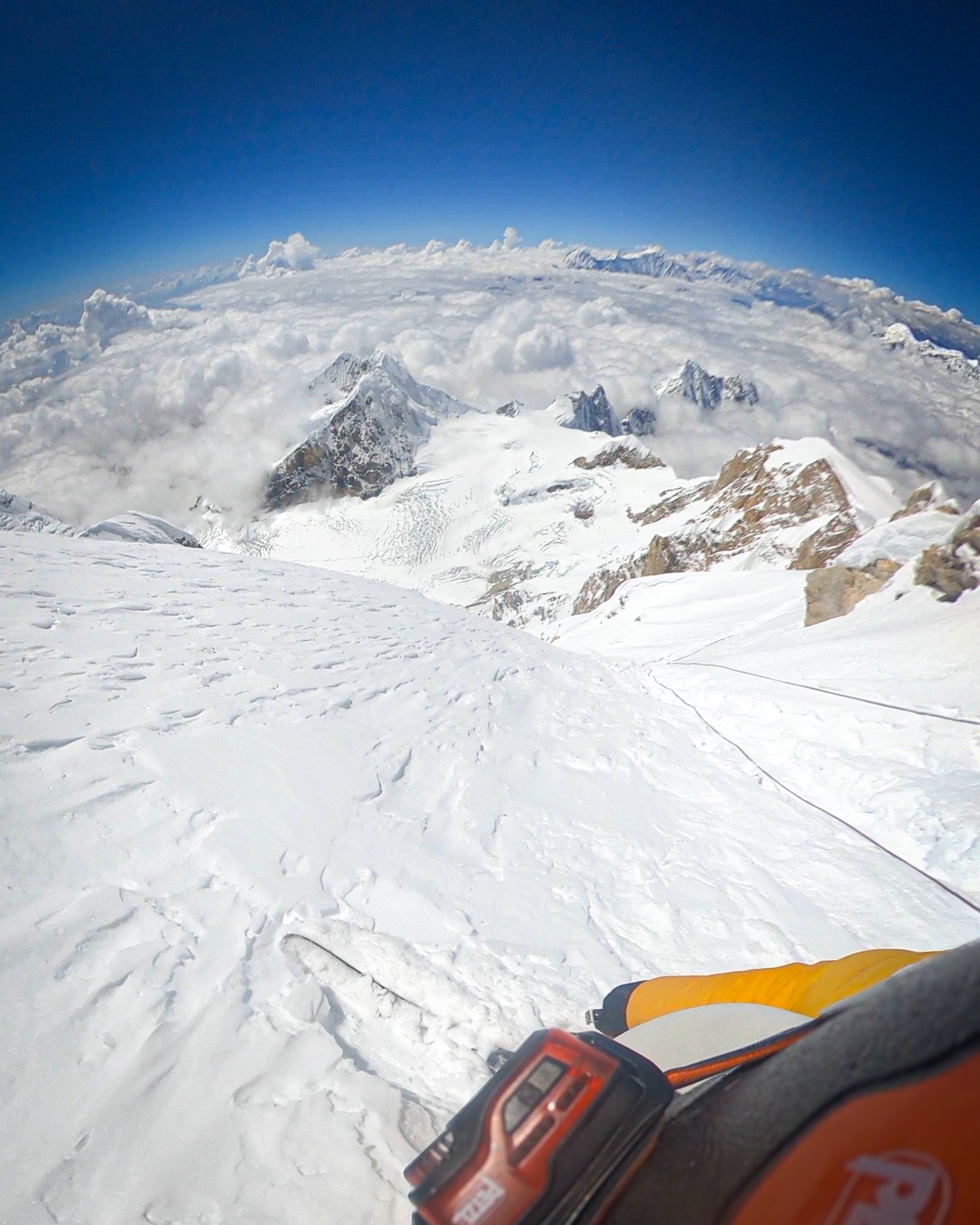 È affascinante vedere come sullo stesso Manaslu convivano due mondi così diversi: da una parte le lunghe file di alpinisti legati alle corde fisse, affidati all’ossigeno e alla logistica perfetta delle agenzie, dall’altra chi sceglie di restare solo con la montagna, cercando linee nuove e mettendosi del tutto in gioco. Inevitabile chiedersi: dove sta la vera avventura?