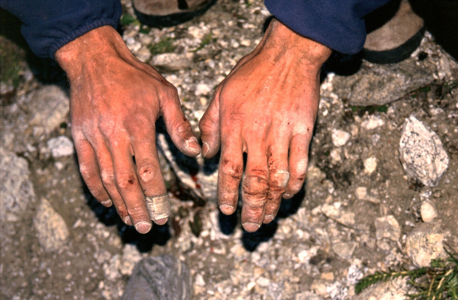 Per aprire una via nuova al Meru, sulla Shark’s Fin, mi preparai un anno intero. Durante quella spedizione però non arrivai nemmeno a toccare la parete. Le scariche di pietre, in quella stagione, e le alte temperature fecero sì che rinunciassimo a qualsiasi approccio alla scalata.