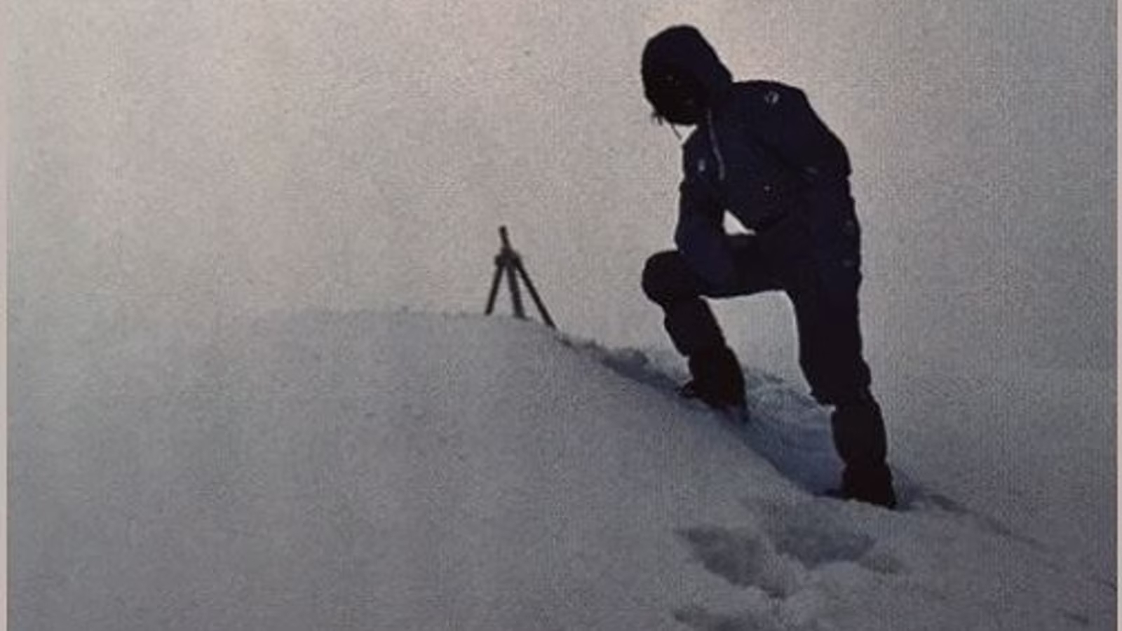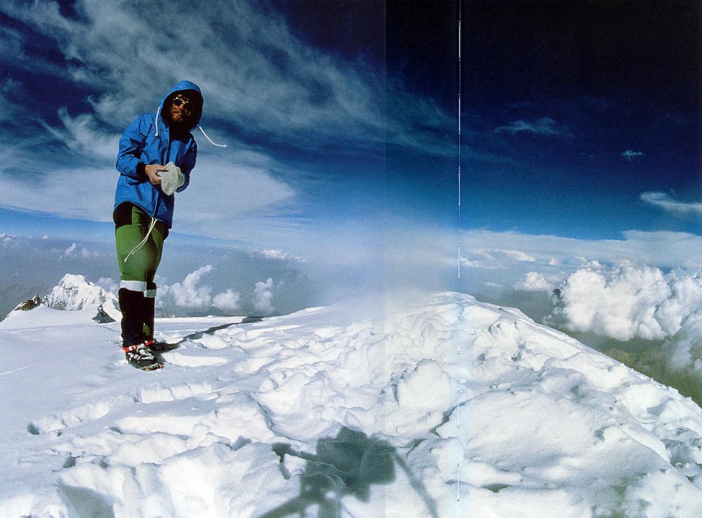 Reinhold Messner in cima all'Everest durante la sua salita solitaria del 1980
