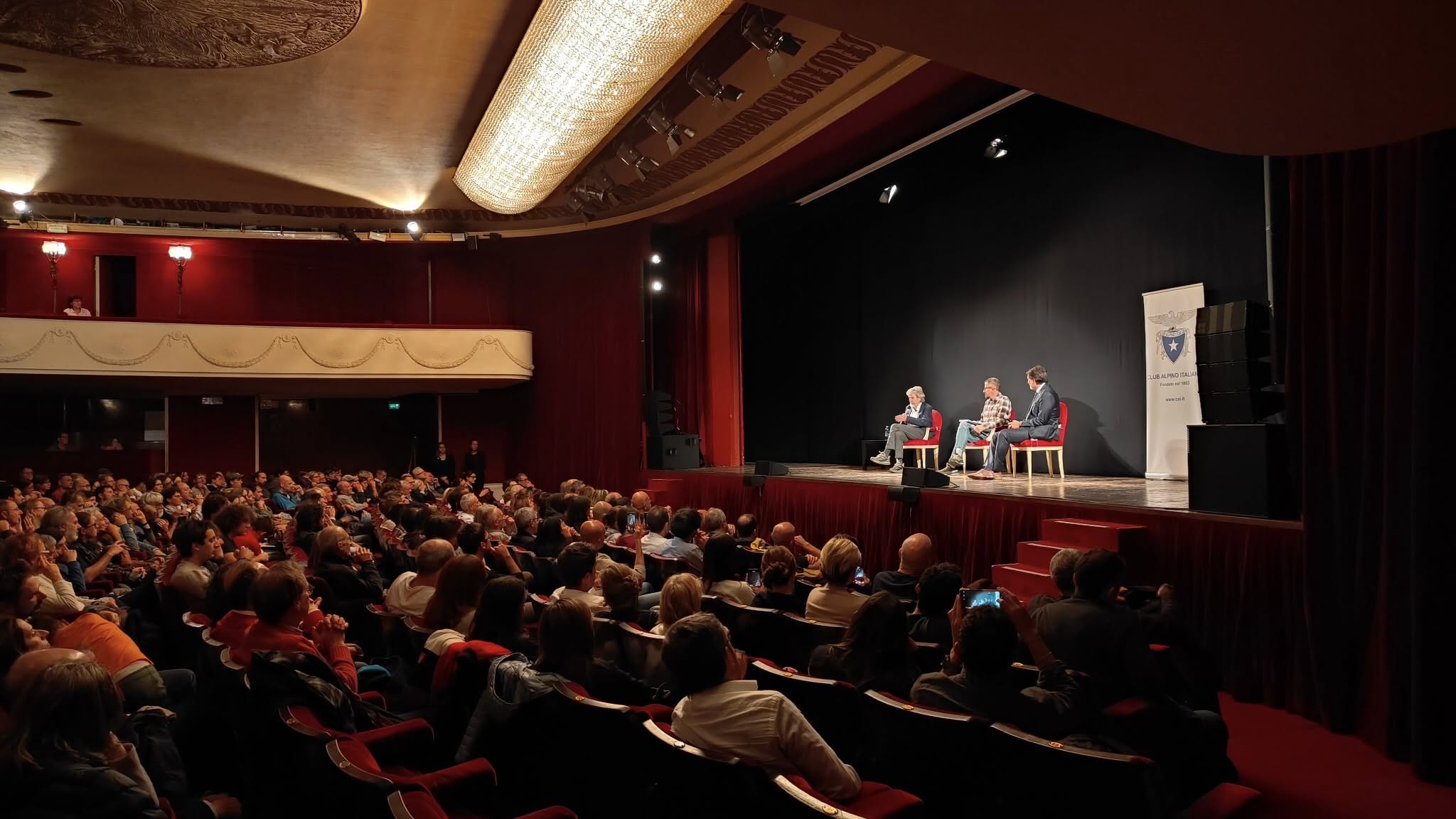 Un momento della serataGuardando sul mio PC il film “K2 – La grande controversia” (da qualche giorno disponibile al cinema), per prepararmi (emozionatissimo) a condurre nel ruolo di moderatore la prima nazionale dell’opera, non ho potuto fare a meno di pensare: “Ma non è che Messner la sta facendo troppo semplice?”