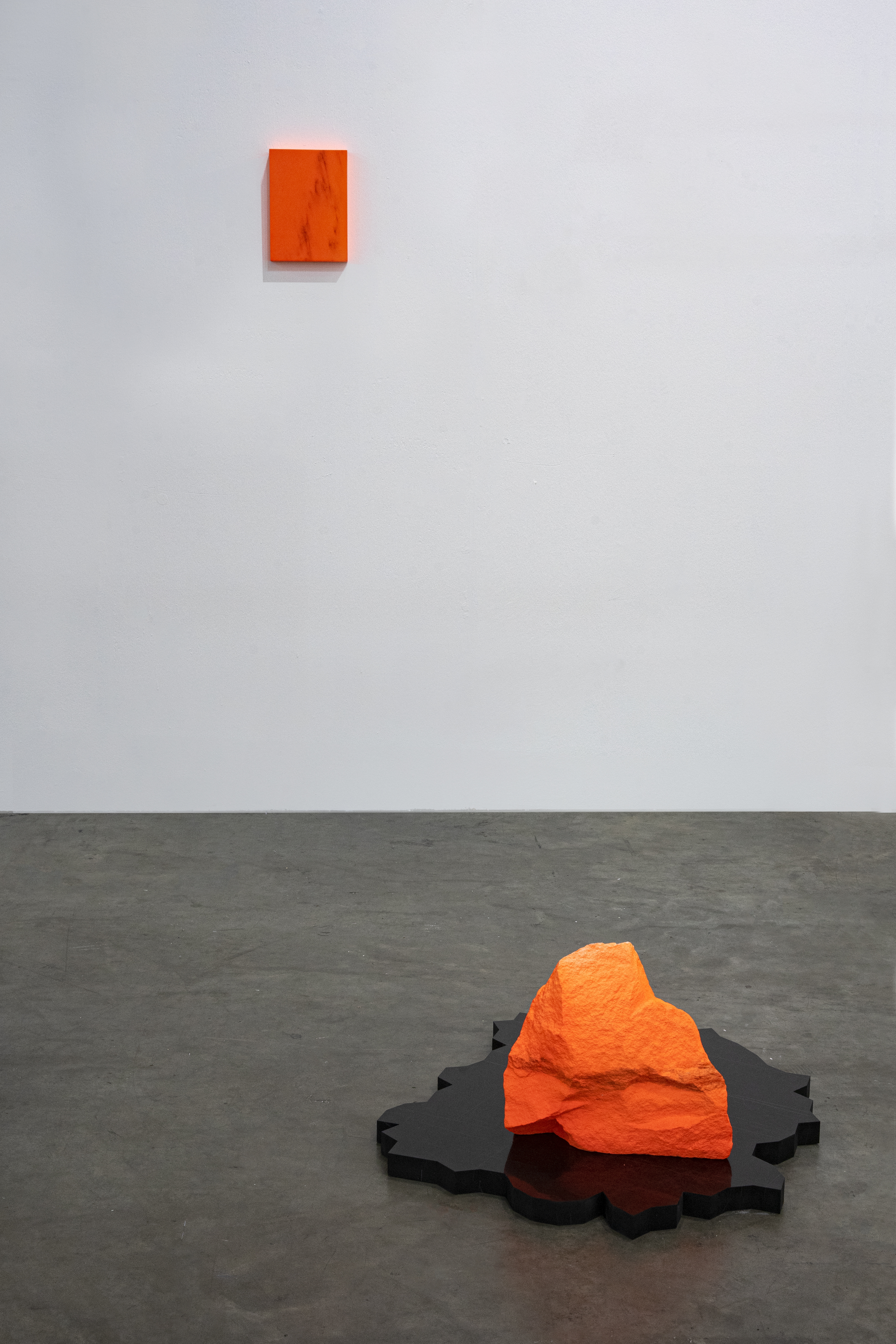 Oltre alla produzione più materica, la mia ricerca si concentra molto anche sull’aspetto cromatico e sulle interazioni che possono esserci con la luce, che, ovviamente, è l’origine dei colori. Nel progetto intitolato Nix, ad esempio, sono andato a lavorare nella cava della Val Lasa e lì mi sono ispirato ai colori fluorescenti che gli operai utilizzano per marcare i punti di rottura. Si tratta di colori artificiali, apposti dall’uomo che scava e disperde il materiale, dove è cruciale trovare il giusto equilibrio tra le masse rocciose che si vogliono asportare e quelle che devono rimanere. Nelle mie opere, lo stesso colore appariscente rappresenta un ulteriore equilibrio: quello tra uomo e natura. La mia non è una denuncia in nome della tutela della natura, quanto piuttosto un confronto, che penso sia più attuale, soprattutto nel mondo dell’arte.
