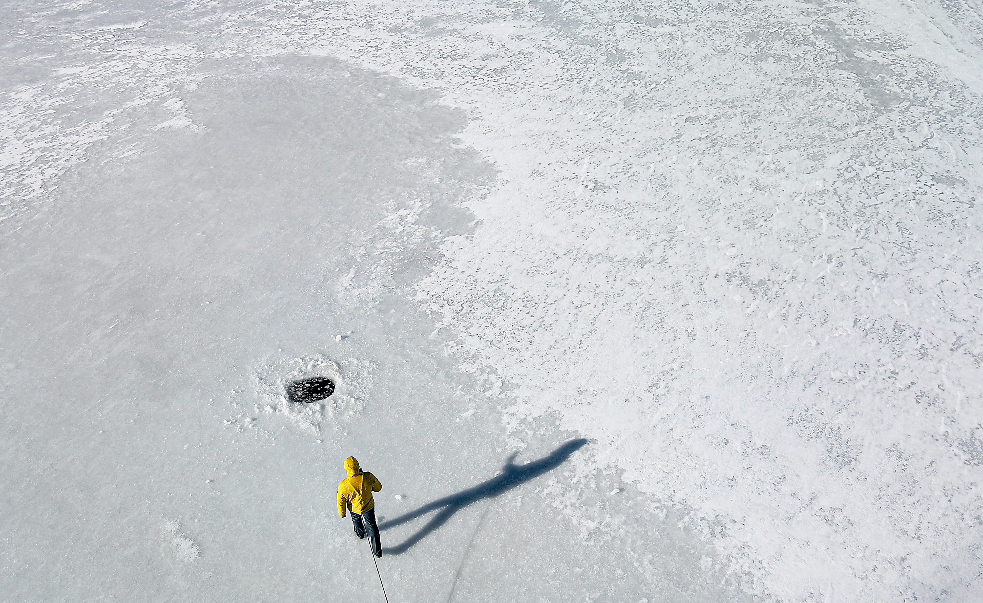 La terra presenta al suo interno zone a densità variabile, 2024 Azione su Lago ghiacciato, Installazione video1 © Archivio Simone CamettiInsegnante di tecniche performative all’Accademia di Roma, scalatore e guida ambientale, Simone Cametti alterna periodi di rielaborazione nel suo studio capitolino a vere e proprie immersioni montane dalle Alpi agli Appennini. Grande sostenitore delle residenze artistiche come strumento artistico necessario per comprendere appieno un luogo, Cametti con le sue opere punta a entrare in contatto profondo con la montagna, in un rapporto dove, attraverso lo sforzo fisico, il corpo gioca un ruolo centrale.