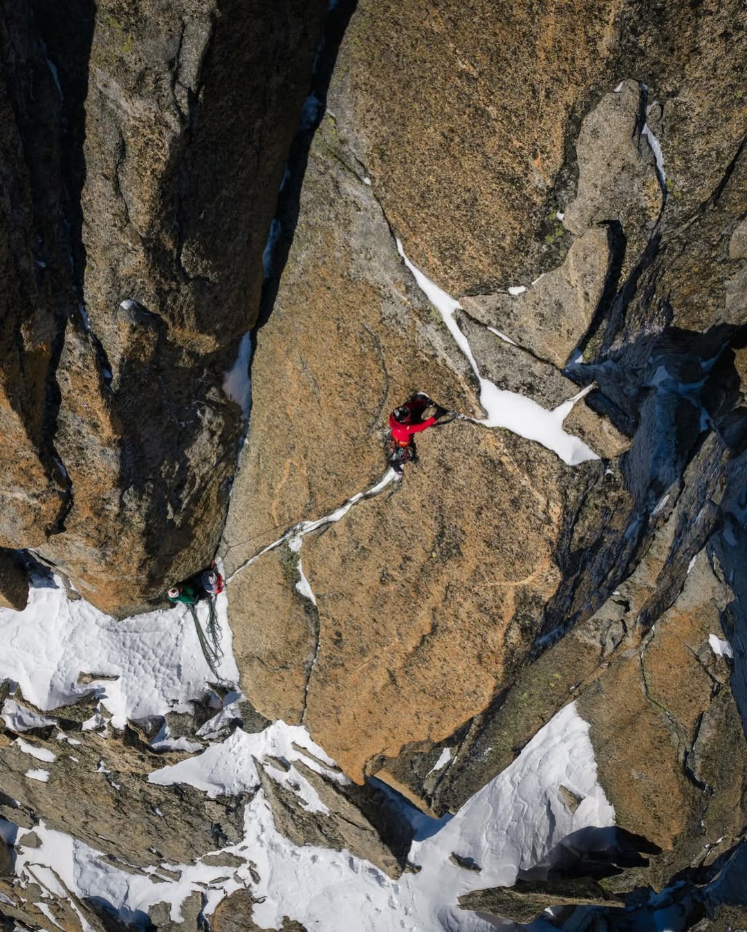 Molti anni dopo, ci sono state un paio di aperture (Full Dry for Love e Misantrhopie I-conique) che hanno guidato Fay Manners nello sviluppo di una via coerente con l'approccio dei predecessori. “Nel 2017, Simon Chatelan ha aperto due percorsi di misto sulla parete nord, entrambi utilizzando solo protezioni tradizionali. Il suo approccio al rispetto della montagna, utilizzando quello che c'è e non lasciando nulla alle spalle, ha trovato la nostra affinità. Niente spit, ci sembrava importante attenersi a quella stessa etica. Volevamo scalare qualcosa di continuo, dal basso verso l'alto, interamente con attrezzi e ramponi, con uno stile rispettoso. Nessuno spit, nessuna traccia. Solo seguendo quello che il granito ci dava”.