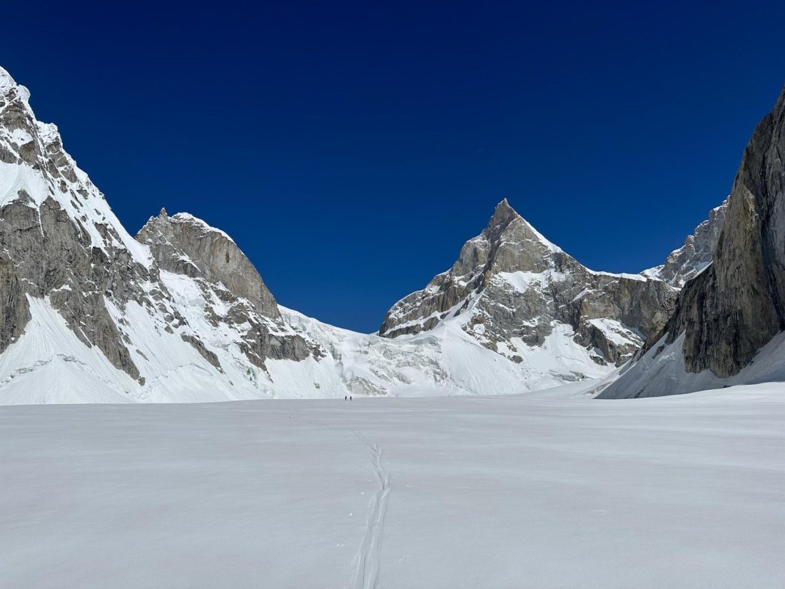 "Abbiamo raggiunto la cima del Baintha Kabata, un Seimila vicino all’Ogre, aprendo una nuova via lungo il pilastro sud. Un itinerario di quasi 1000 metri di sviluppo, molto logico, che ci ha regalato in ogni passaggio bellissime viste proprio sull’Ogre. Abbiamo impiegato due giorni per effettuare la salita, nel corso del primo abbiamo salito i primi 700 metri, bivaccando in un nevaio. Il secondo giorno abbiamo raggiunto la cima e siamo scesi. Che soddisfazione e che fortuna aver avuto questa finestra di bel tempo a fine spedizione, anche se così breve! Quando ci siamo ritrovati in vetta già nevicava. Rientriamo così, con lo sconforto per l’obiettivo mancato ma con una nuova via di tutto rispetto su una bella montagna"