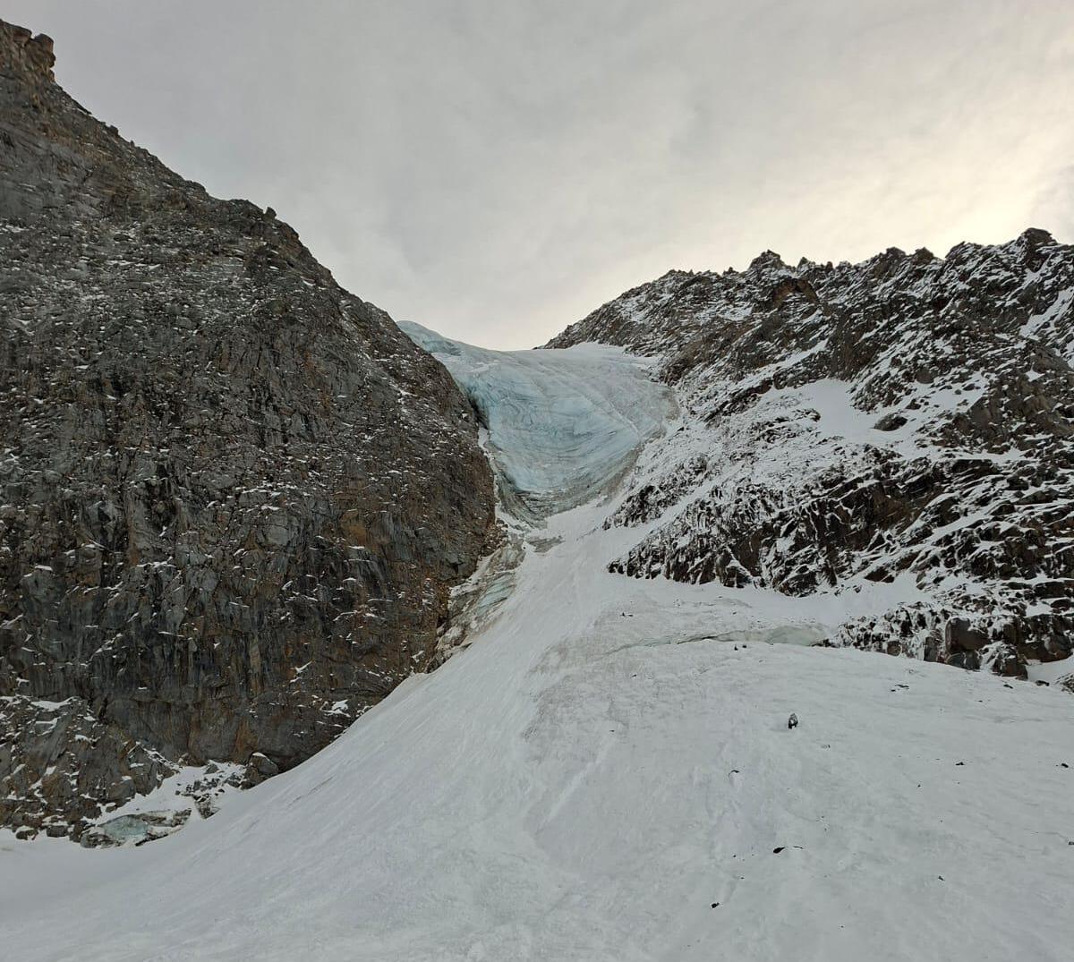 La zona del distacco © CNSASSi è purtroppo conclusa nel peggiore dei modi la ricerca dei due escursionisti dispersi dopo la valanga che sabato 1 novembre ha travolto più cordate nella zona del Ortles, sulla parete nord della Cima Vertana. Ieri mattina, domenica 2 novembre, poco dopo le 10, i soccorritori hanno rinvenuto senza vita i corpi dei due: si tratta di un padre e di sua figlia diciassettenne, entrambi di nazionalità tedesca. Entrambi sono stati trascinati verso la parte inferiore del canale dal quale si era staccata la massa nevosa.