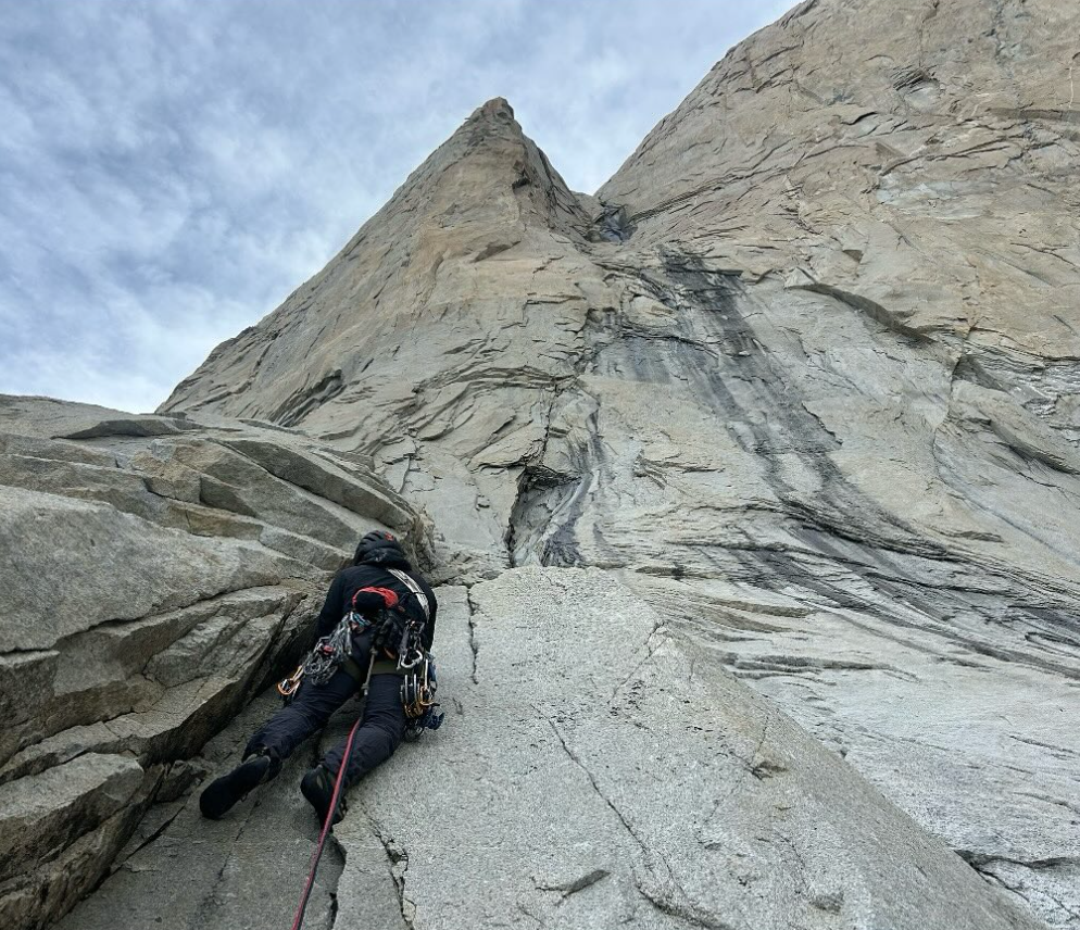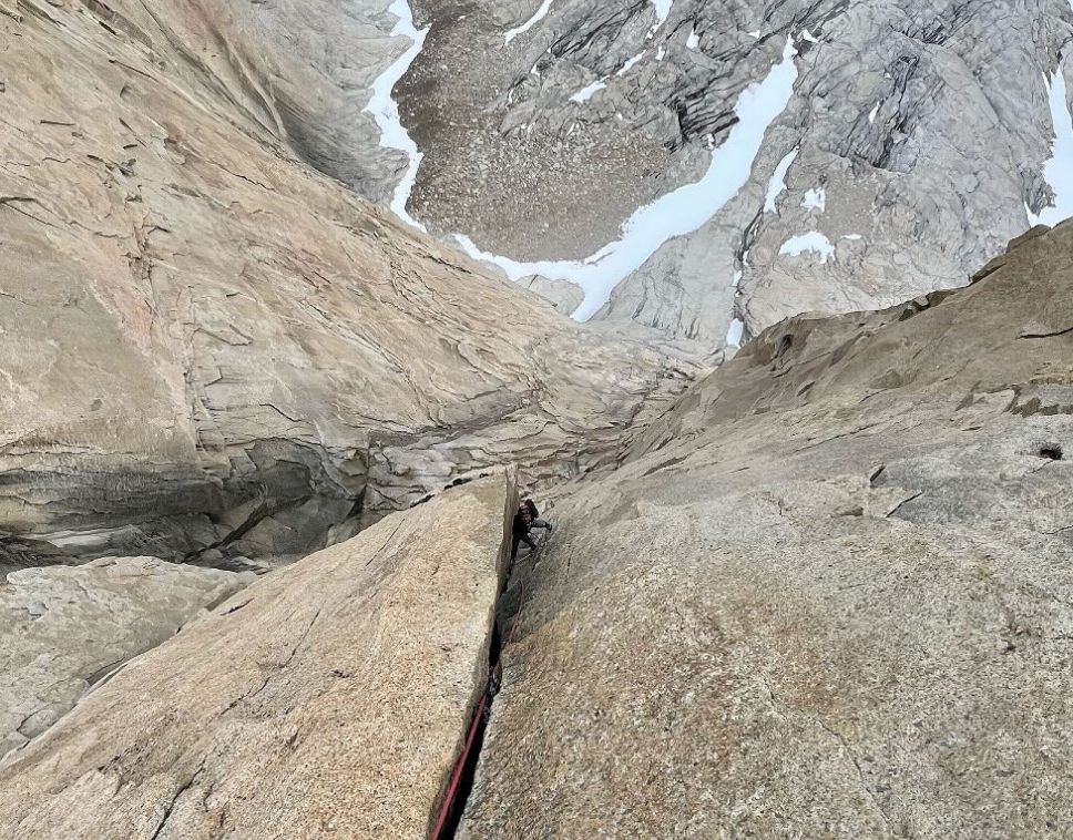 "Avevamo avvistato una linea sul Cuerno Norte durante le precedenti uscite nel parco, e dopo avere concluso entrambi la nostra stagione da guide, abbiamo deciso di fare tutto in "disaster style" e vedere se potevamo farcela prima che la finestra meteo si esaurisse. Dopo avere preso a malapena l'ultima barca attraverso il lago, ci siamo avvicinati nella notte, dormendo qualche ora nella foresta prima di continuare l'avvicinamento all'alba. L'arrampicata ha subito compensato la mancanza di sonno, con tiri puliti, appoggiati ma tecnici e una fessura che ci ha portato a un ampio diedro, tutto in libera con difficoltà fino a 5.11+".