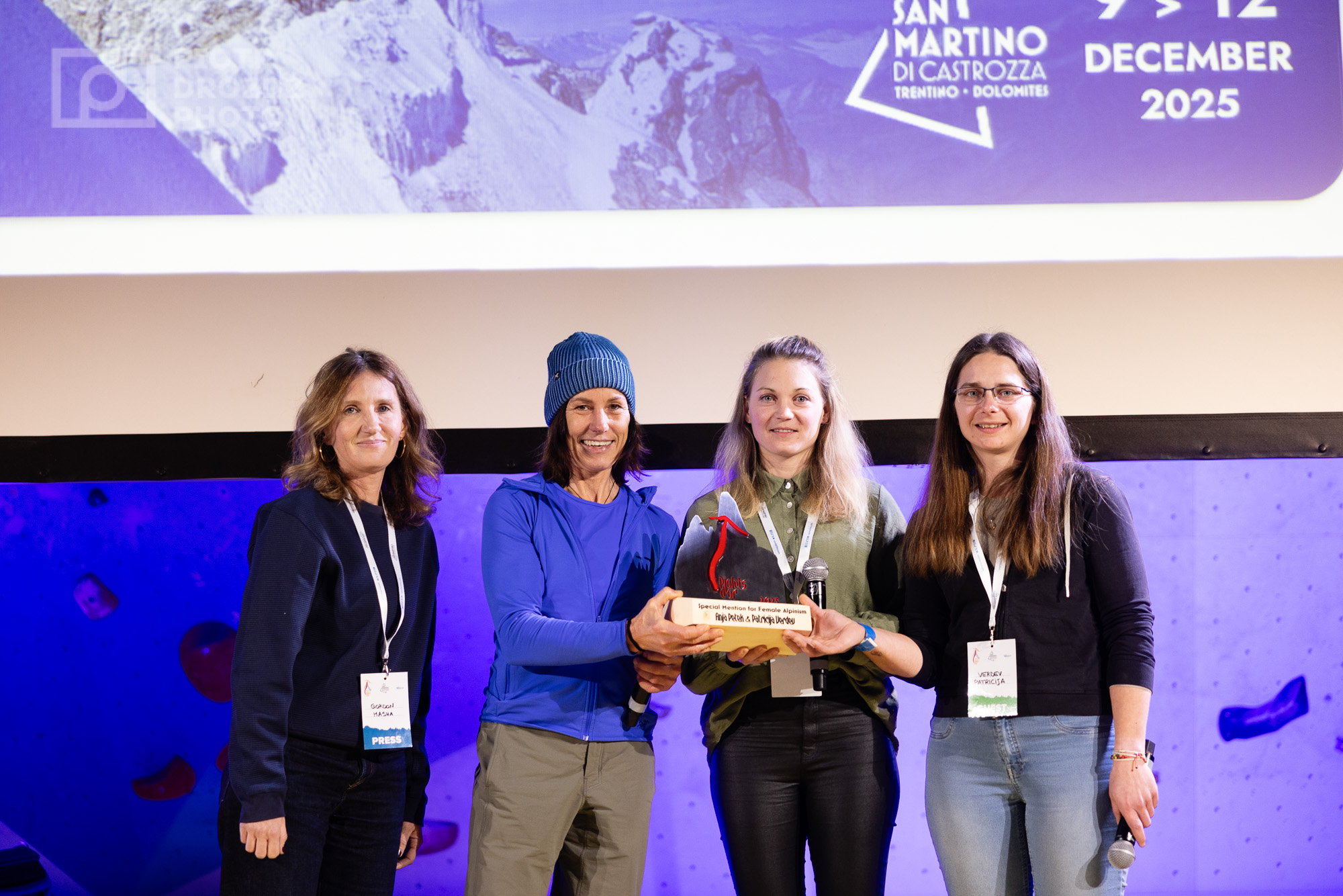 Zanskar, in Himalaya. La tedesca Ines Papert, componente della giuria, e la britannica Masha Gordon, hanno consegnato alle autrici la menzione speciale: “Avete fatto qualcosa di stupendo, aggiungendo una preziosa tessera al grande puzzle delle alpiniste”.