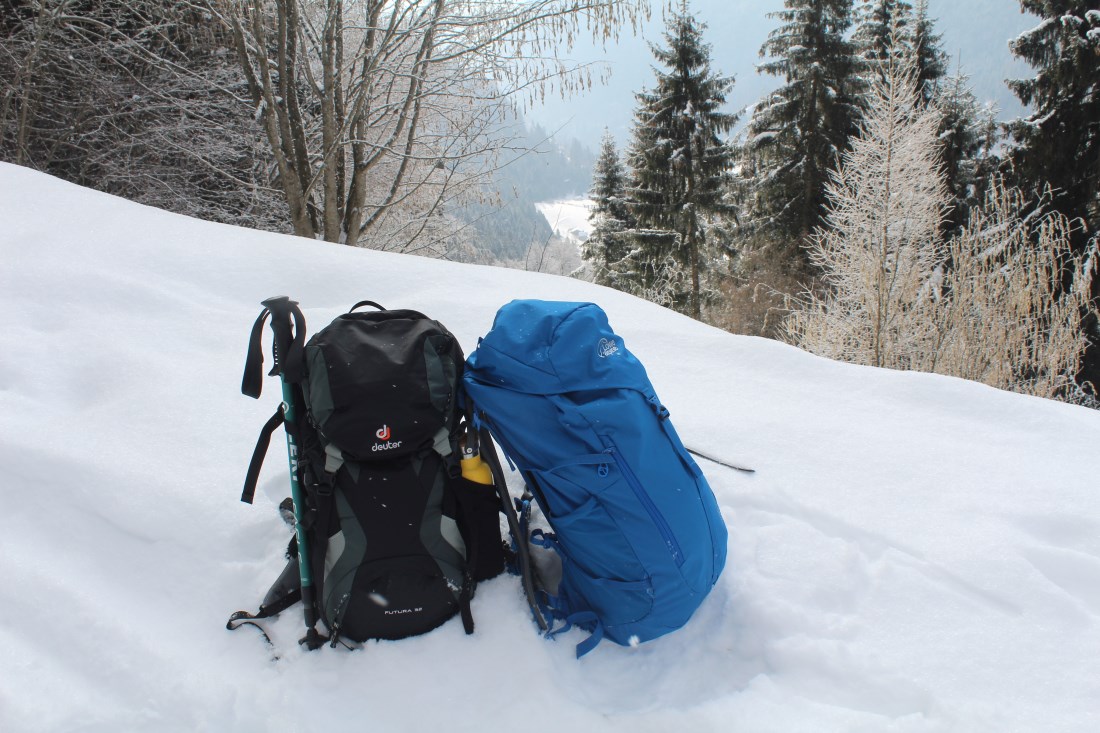 Gli zaini scelti dagli autori per un'escursione invernale giornaliera. Foto Denis Perilli