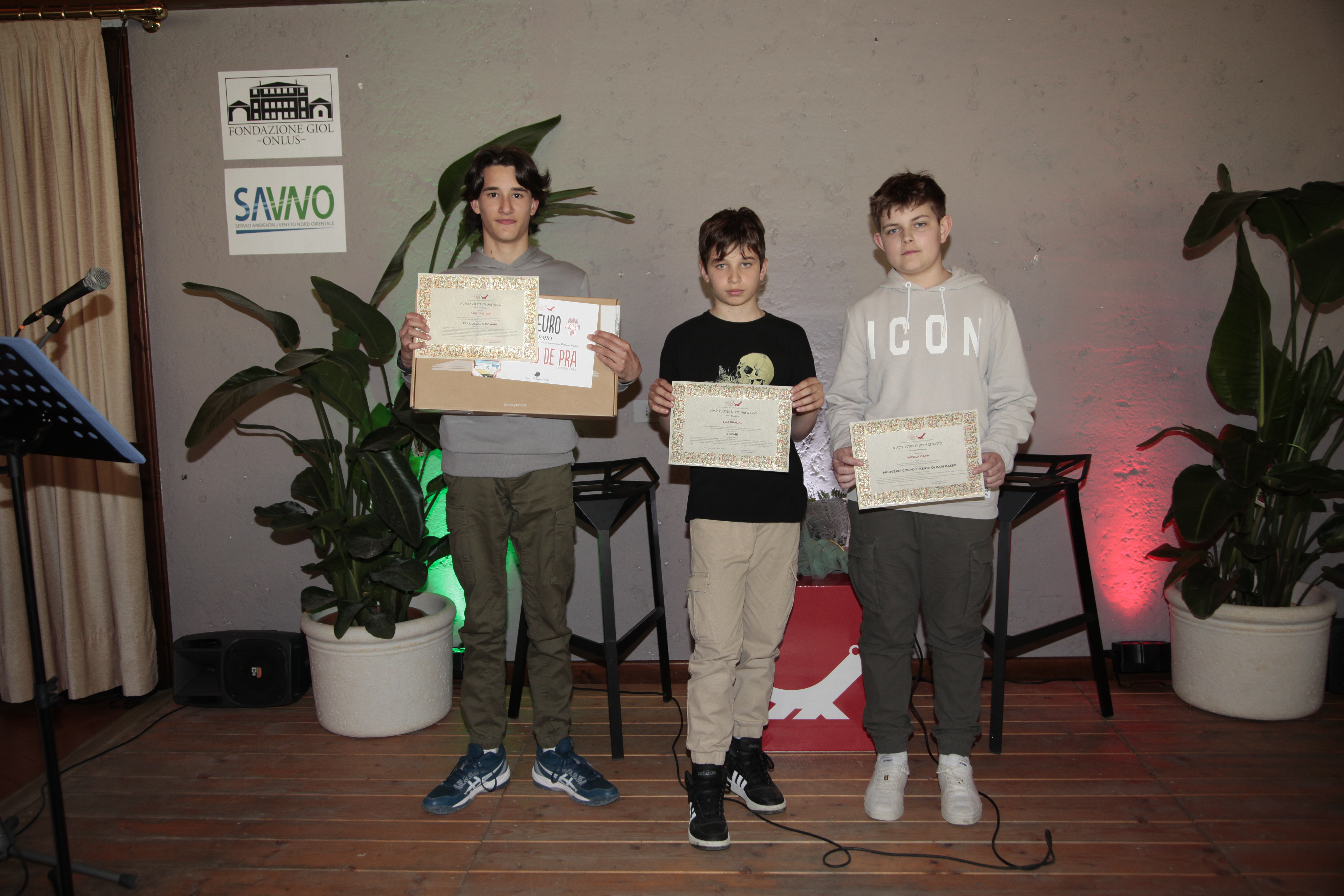 Oltre al riconoscimento simbolico, i premi si sono tradotti in borse di studio in buoni libro – 300, 200 e 100 euro per i primi tre classificati – accompagnate da computer portatili offerti da SAVNO e da una selezione di volumi messi a disposizione dall’organizzazione.