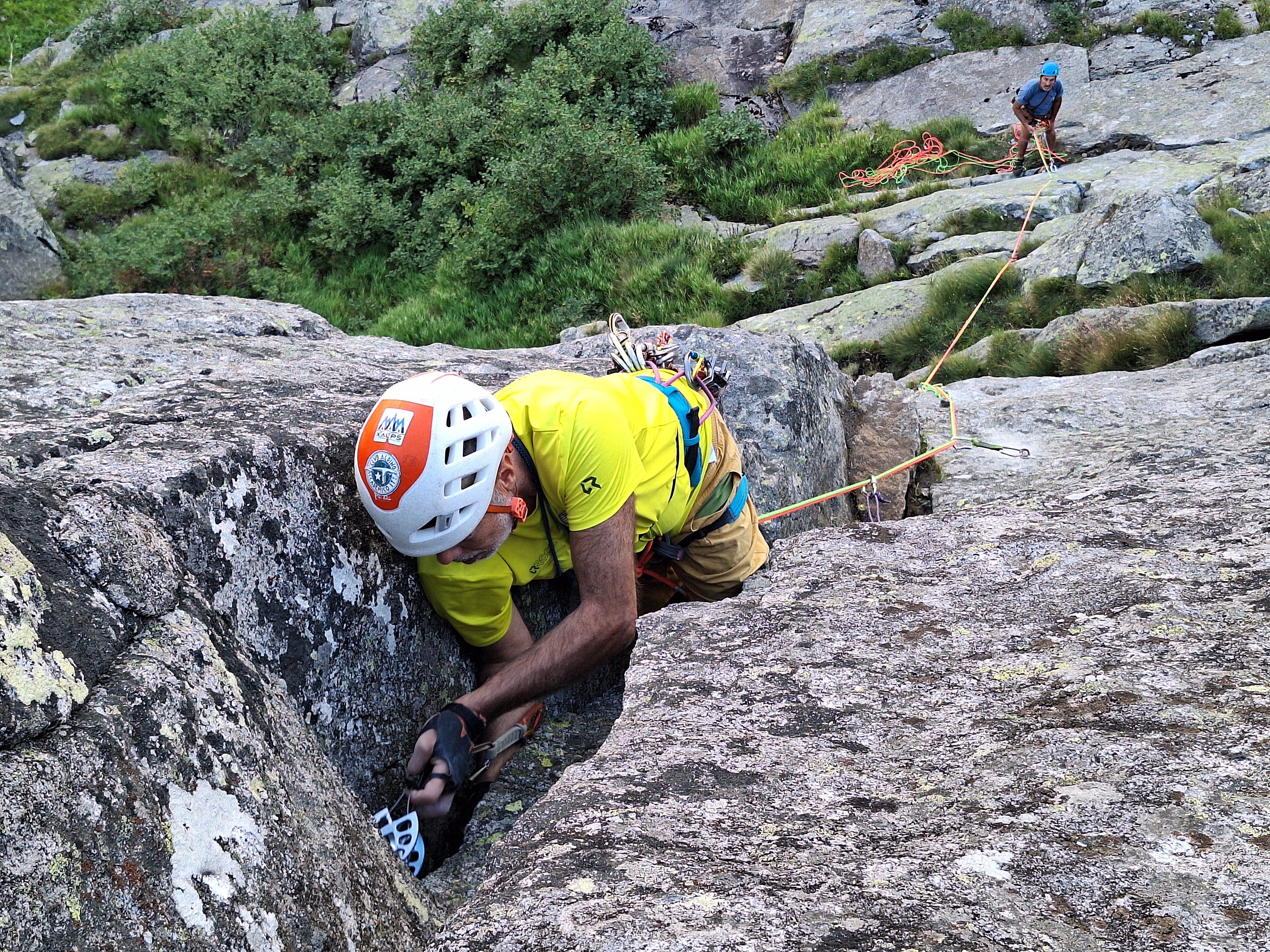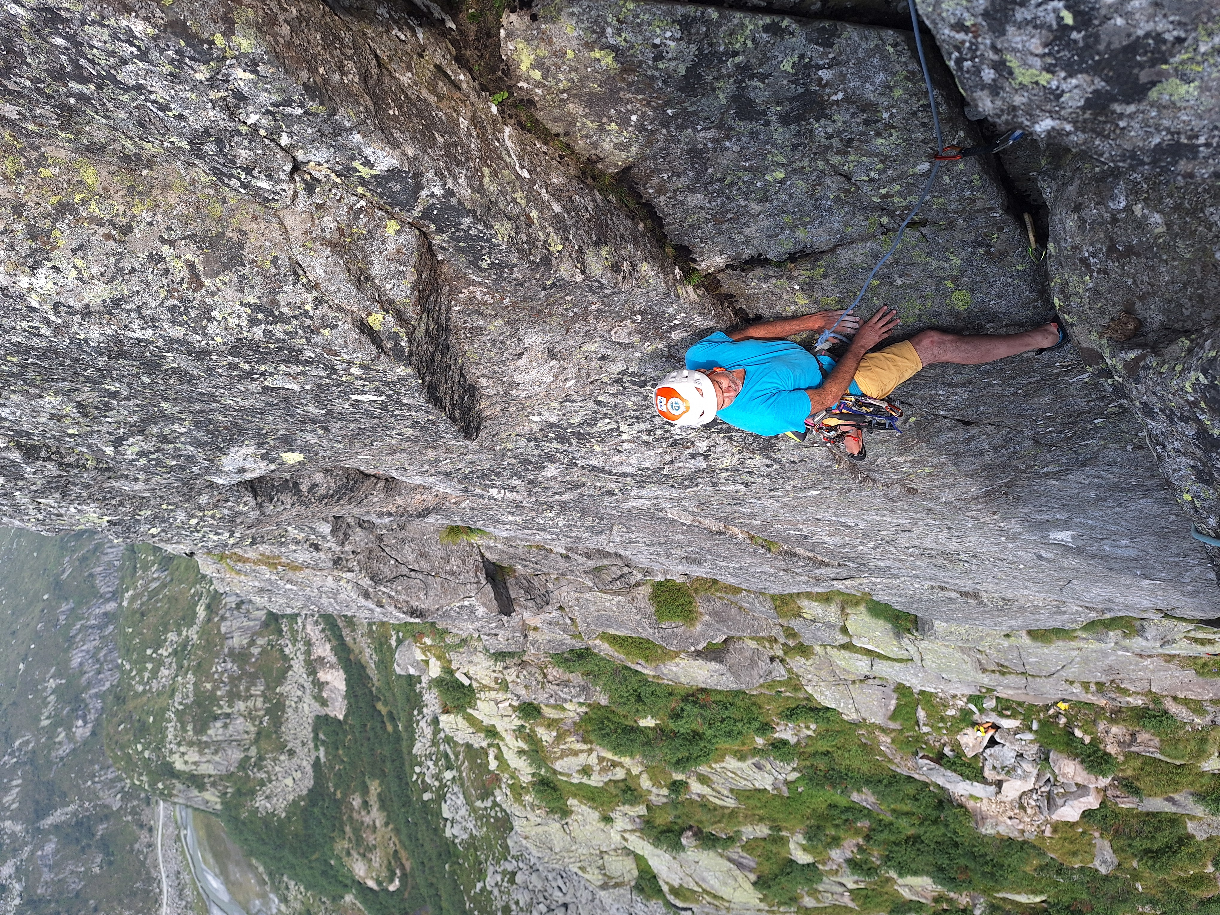 L'ambiente è splendido. Dal rifugio Segantini – si parcheggia poco prima- ci vogliono appena 20 minuti per raggiungere l'attacco, l'avvicinamento è comodo. “La discesa che consiglio è sull'altro versante: la si risolve con un paio di doppie e un rientro che passa di nuovo dall'attacco. È una via estiva, esposta a ovest, la quota non è trascurabile. Vista la comodità può diventare ben frequentata. Noi ci siamo divertiti. Righetti è il mio socio storico, ci scalo da 40 anni, Beppe Vidali non ha bisogno di presentazioni e Walter Manzi, della Val di Non, è stato l'elemento più fresco della cordata. Eravamo un bel team agostano”.