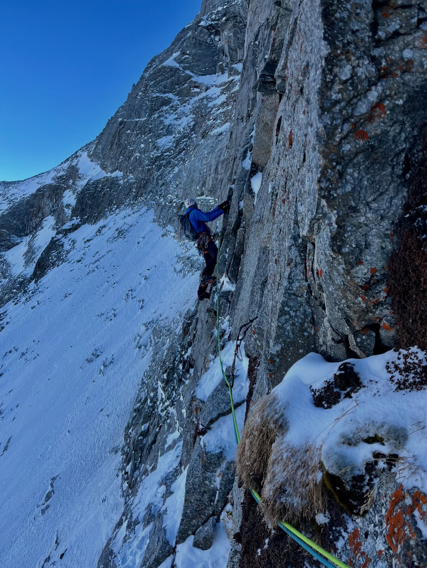 La via ha effettivamente più di quarant'anni, ma il tempo ha fatto il suo corso, rendendola quanto meno una avventura per larghi tratti inedita. “Già sui primi due tiri siamo riusciti ad aggiungere una nuova, impegnativa variante con partenza diretta. I tiri successivi sono stati... speciali. Nessuno aveva toccato questo terreno da oltre 30 anni, e mai in inverno (a parte 3 metri di dislivello dove la via incrocia un nuovo progetto). Dopo 7 tiri difficili tra M6 e M7+, terreno più facile su ghiaccio ripido, cenge e placche innevate ci hanno condotto all'uscita. Poco prima delle 19:00 eravamo in cima al Sagwand. È stata una giornata piuttosto intensa, difficile da descrivere: quasi 17 ore di cammino, con diversi tiri impegnativi lungo l'itinerario”.