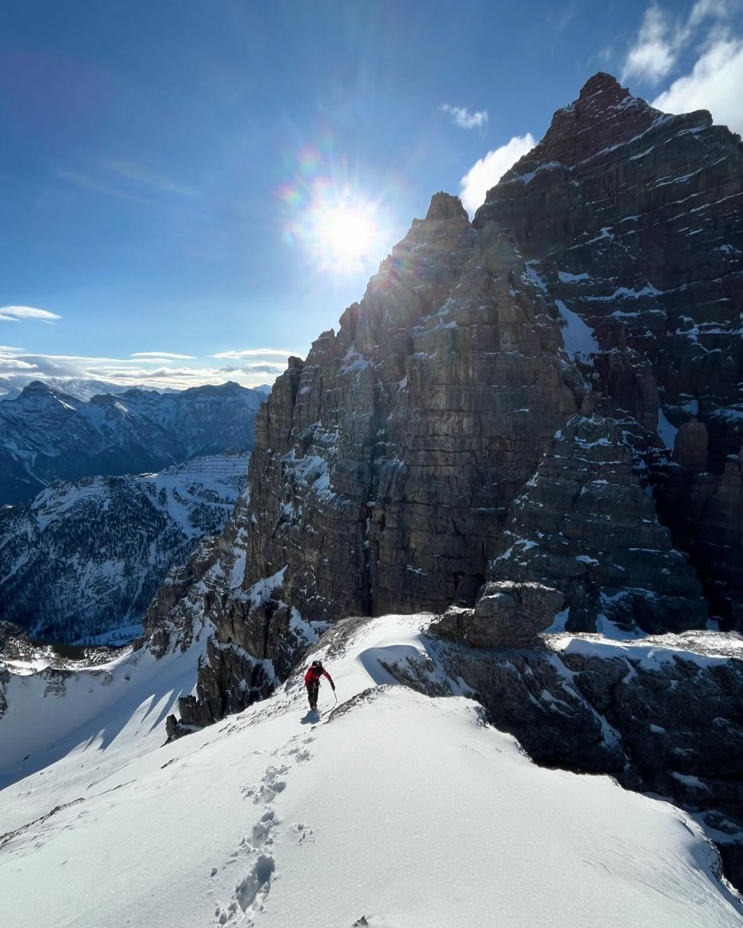 Waldner e Sieberer durante la traversata © L. Waldner, M. SiebererMai, prima d'ora, era stata effettuata la traversata invernale del Kalkkögel in giornata. Questa catena montuosa delle Alpi dello Stubai , vicino a Innsbruck, è comunemente conosciuta anche come Dolomiti del Nord Tirolo, per le sue caratteristiche formazioni rocciose. In inverno la traversata diventa un'avventura non priva di difficoltà e incognite. Le abbondanti nevicate di quest'ultimo periodo hanno reso il tutto più incerto, ed è proprio quello che ha motivato Lukas Waldner e Martin Siberer .