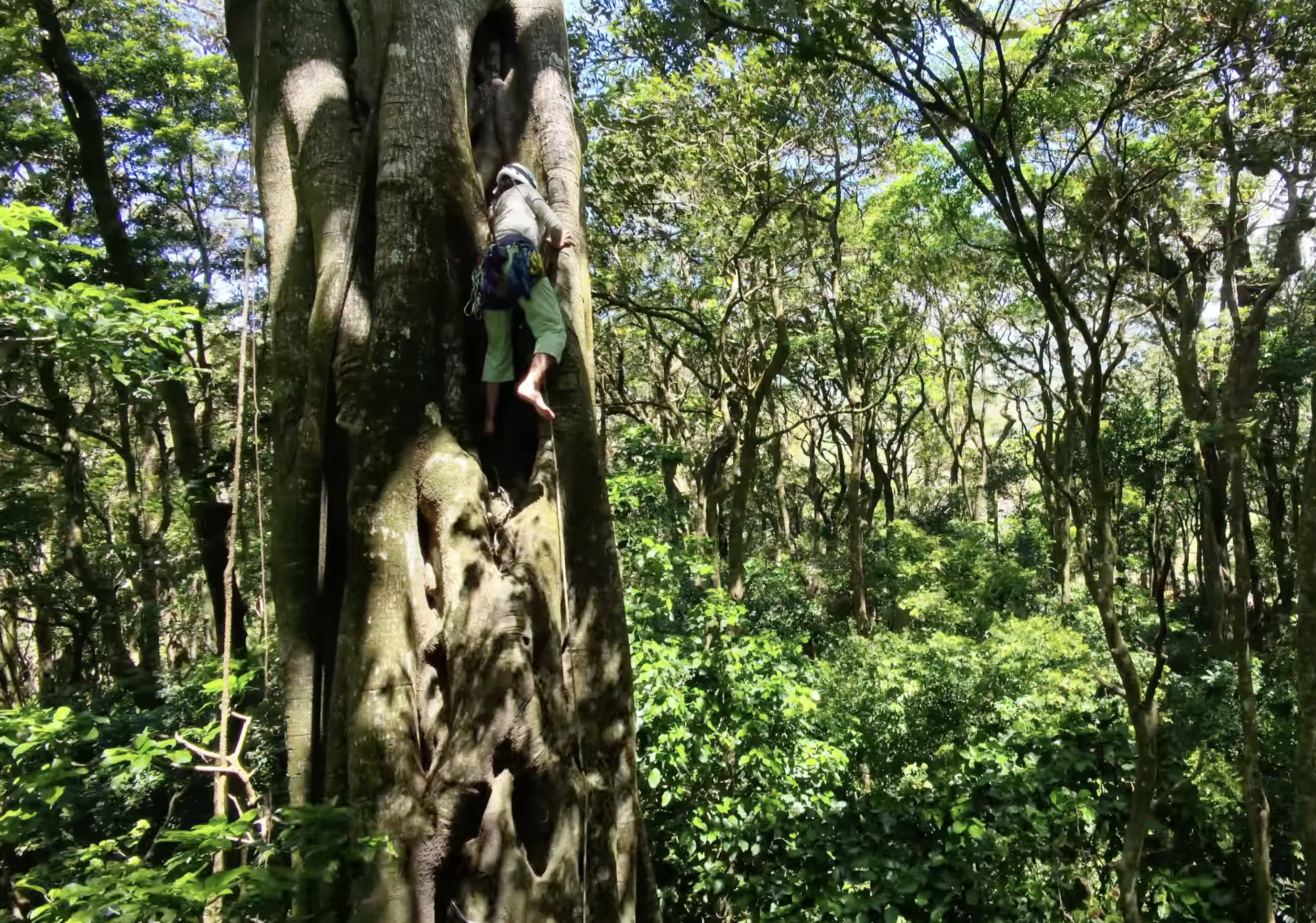 Per progredire su pianta, gli scalatori utilizzano soft gear, protezioni morbide che non arrecano danno alla pianta. Dadi e friend infatti andrebbero a intaccare la corteccia, mentre fettucce e bolas sono più tenere sul legno. L'altra particolarità del tree climbing praticato in questo video è la scalata barefoot, a piedi nudi, che risponde più che altro a esigenze di grip e sensibilità.