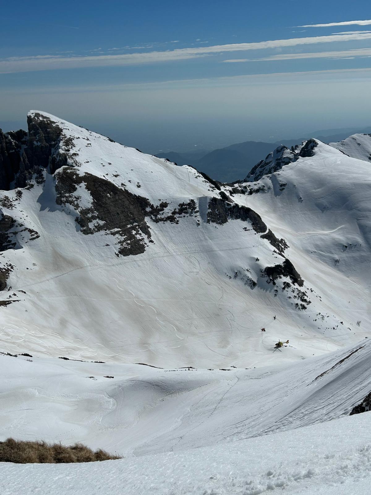 Si è concluso questa mattina un intervento di recupero per uno scialpinista precipitato nel gruppo del Carega. L’uomo è stato soccorso intorno alle 11:30, dopo essere scivolato per oltre 200 metri da Cima Mosca su neve ghiacciata e rocce, arrestandosi nella conca sottostante a circa 2000 m di quota.