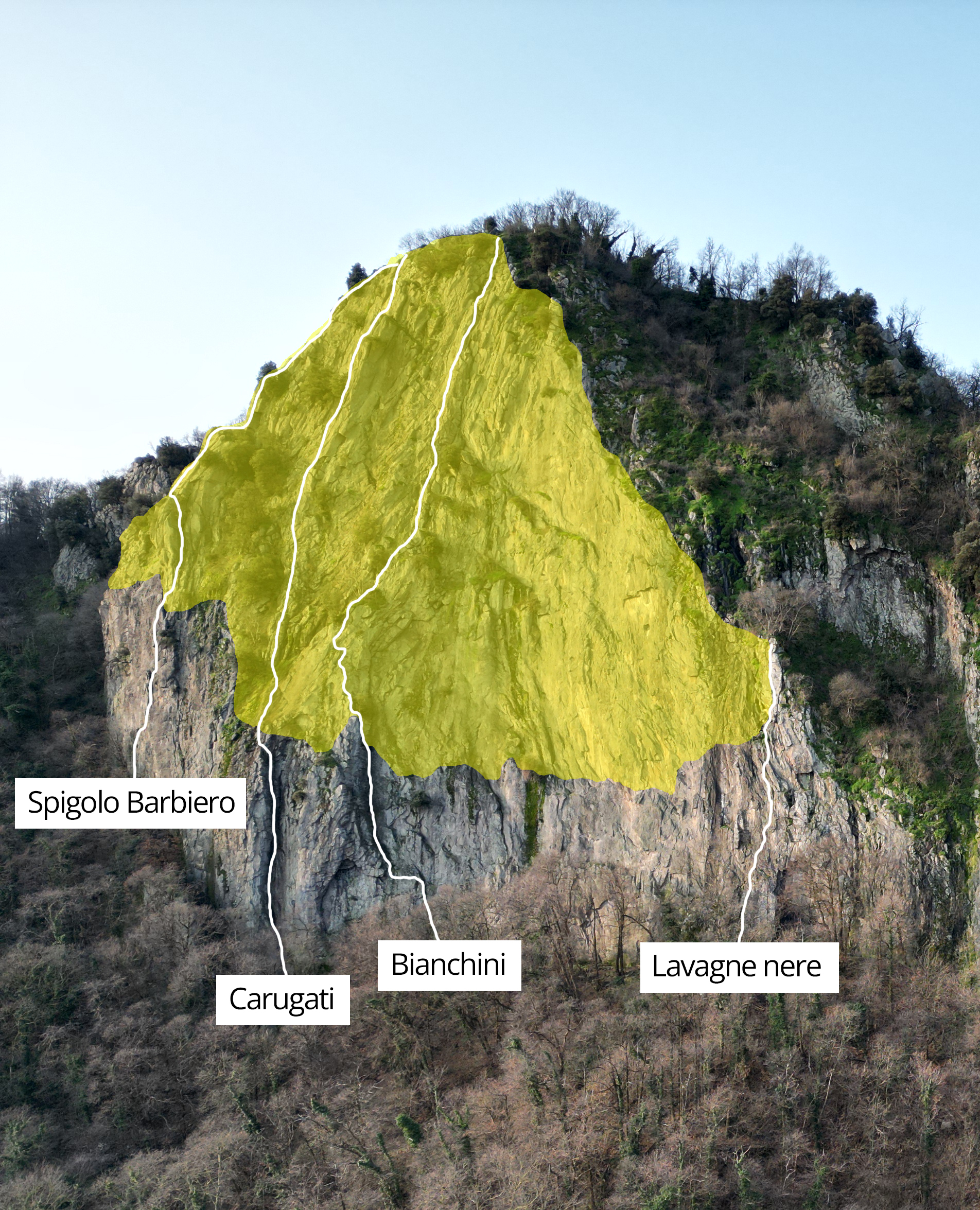 L'area di divieto temporaneo di arrampicata a Rocca Pendice, sui Colli Euganei © Parco Regionale dei Colli Euganei
